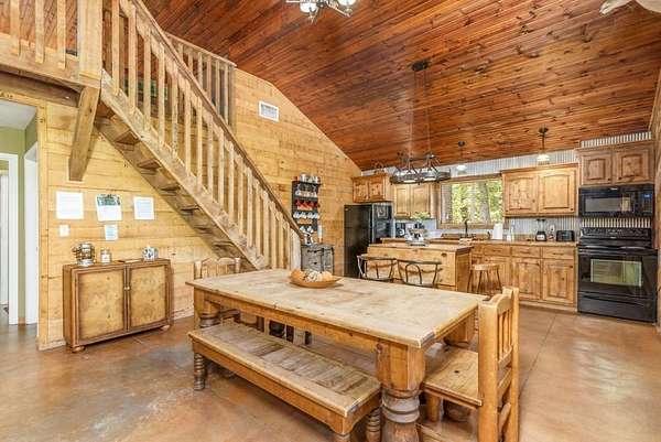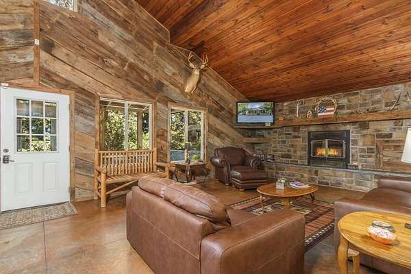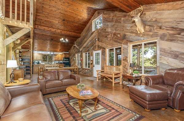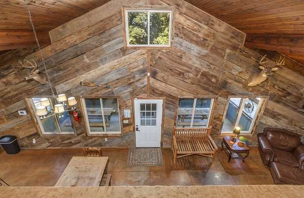 This opportunity doesn't come often! A stunning cabin that lies in the middle of approximately 74.88 scenic acres near Bennett Spring State Park. This cabin sits on an Ozark bluff and has a breath taking view. The property has been used as a highly sought after vacation rental for 15 years and the income that has been produced for this unit is unbelievable! The finished rustic lodge can sleep numerous guest and features 2 bedrooms, 1 bath in open floor plan layout. The bedrooms each have king beds. The loft area consist of two 2 twin beds and 2 full size beds as well. There are two high quality rollaway beds that make this location a pleasant experience for multiple families. The large grand room has a stunning wood burning fireplace and give it that cozy lodge feel. You will also notice the large screened in front porch that allows you to experience nature but keeps the bugs away as well! The property has a private well and private septic tank. The HVAC system is forced air and is very efficient with the wood burning fireplace option as well. The aerial view of the property will show the outdoor firepit with 4 Adirondack polywood chairs, large outdoor grill and the gorgeous Niangua River. This property has approximately a quarter of a mile of river frontage and provides amenities such as tubes, lifejackets, chairs, etc. to fully experience what the Niangua River has to offer its guest! This property lies at the end of a dead end private drive and secluded from surrounding properties. If you are looking for a property you can visit periodically with your personal family and make a great income while you are away, this is a rare opportunity so don't wait to view. Give me a call to schedule a showing or for any questions!