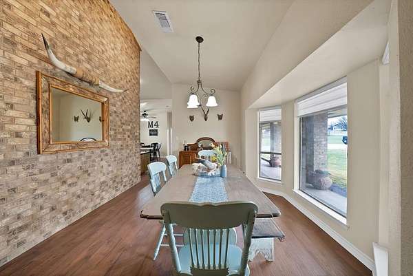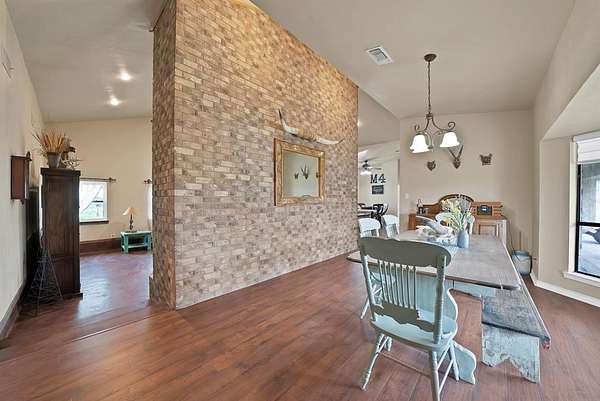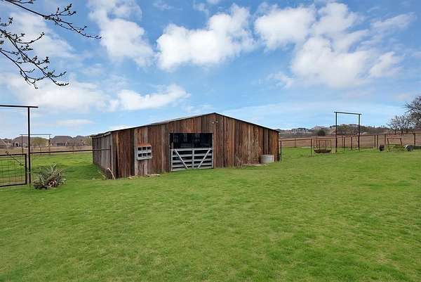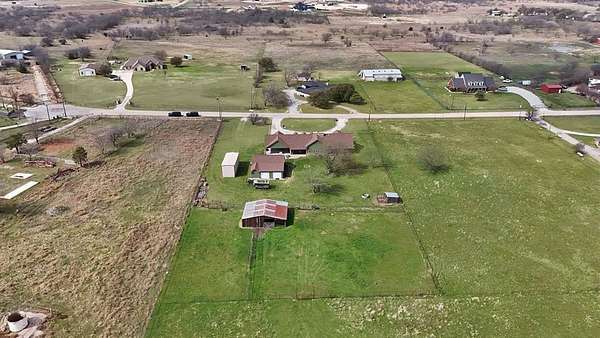 Beautiful house on 10 acres in Aledo ISD with ag exemption on 9 acres, this is a rare find! Spanning over 2,400 sqft, this charming 3 bedroom, 2.5 bath home boasts a beautiful kitchen with walk in pantry and breakfast nook perfect for sipping morning coffee to enjoy your view. Entertain with ease in the expansive living area, complete with a cozy wood-burning fireplace with doors that lead to the covered patio. Expansive primary suite with large bathroom and walk in closets. Enjoy gorgeous sunset views overlooking the pastures. Home features an RV or boat metal storage building, detached garage that has been finished and makes a great man cave or game room with so much storage space! Multi-functional barn with water. Pipe fenced with no climb wire and cross fenced. Well water. No HOA. Move in ready for you and your horses, cows, donkeys, and chickens.