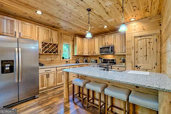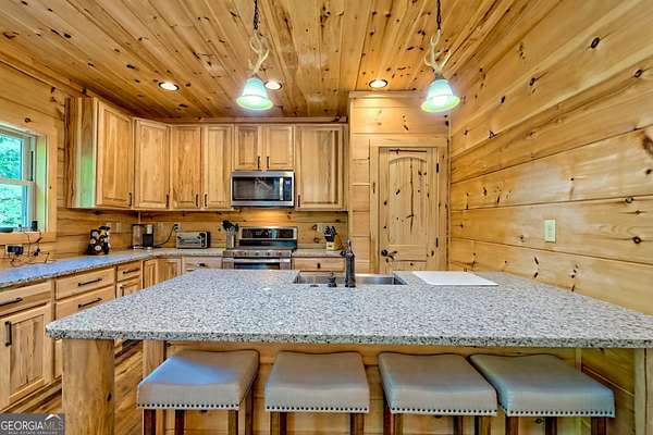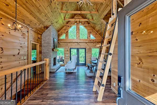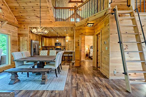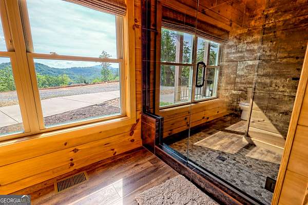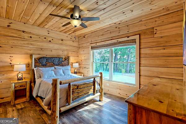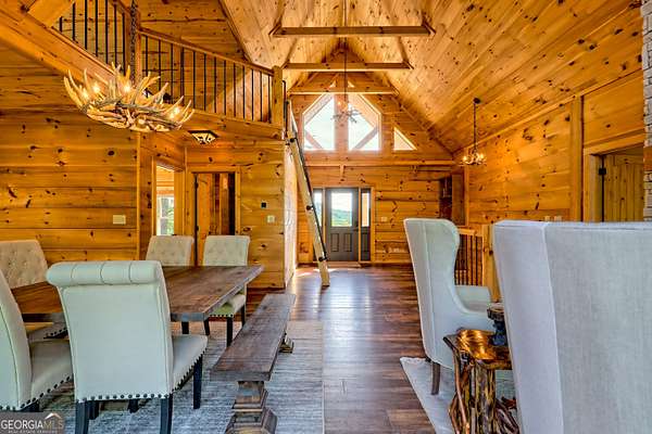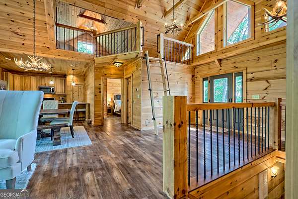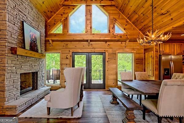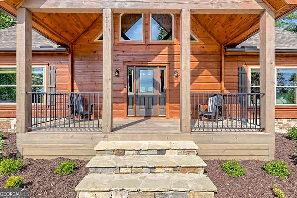 Escape to the serenity of Lake Burton and the North Georgia mountains in this beautifully crafted 4-bedroom, 3-bathroom custom log cabin, nestled in the Summit at Lake Burton, a private gated community just over a mile from the iconic LaPrade's Marina. Thoughtfully designed and newly built, this home exudes rustic elegance with soaring wood-beamed ceilings, freshly-scented pine walls, and expansive windows that bathe the open living spaces with natural light. The main level boasts a spacious primary suite and a comfortable guest bedroom/bathroom-all wrapped in rustic charm and natural light. Upstairs, a versatile loft provides the perfect space for a home office, reading nook, or kids' hangout. The terrace level is designed for fun and functionality, with two additional bedrooms, a full bathroom, a stylish bar area, foosball and air hockey tables, and a cozy media space anchored by a massive TV and plush sectional---ideal for movie nights or game-day gatherings. Step outside to experience the magic of mountain living across two levels of expansive decks. Enjoy a soak in the private hot tub, rinse off in the outdoor shower, or gather around the fire pit strung with twinkling cafe lights---the perfect backdrop for storytelling and stargazing. Additional highlights include a circle driveway for easy access and ample parking, and thoughtful finishes throughout that blend rustic elegance with modern comfort. In additional to the amenities of Lake Burton and the North Georgia mountains, downtown Clayton is just a short drive away, where you can immerse yourself in local culture, browse charming boutiques, and indulge in the many restaurants and attractions the town has to offer. Whether you're looking for a full-time mountain escape or the ultimate weekend getaway, 117 Ivy Ridge Way is a turn-key sanctuary that invites you to relax, unwind, and savor the best of Lake Burton living.