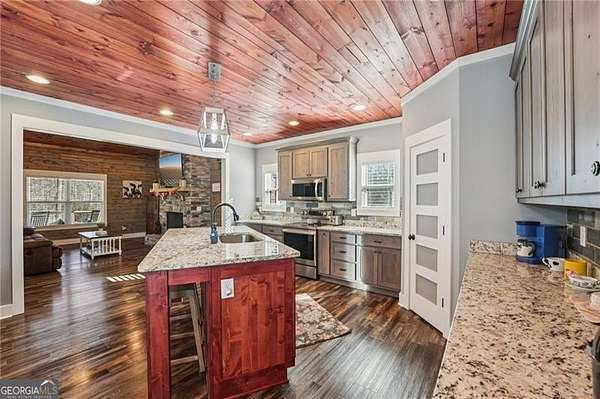 TUCKED AWAY IN THE FOOTHILLS OF THE N GA MOUNTAINS IS WHERE YOU WILL FIND THIS GORGEOUS PRIVATE RETREAT SITUATED ON 11 ACRES!! Original Owner is offering this Quality Built Custom Home on full finished terrace level. GREAT Curb Appeal, Quality Craftsmanship & Attention to Details will be noticed from the moment this Beauty comes into view... Sit in Awe for a moment on the true rocking chair front porch before even stepping inside the desirable open concept. Once you enter though, the stacked stone fireplace w/flagstone hearth will definitely catch your eye. If you love to cook and/or entertain this Very Large eat-in kitchen is PERFECT! It boasts Gorgeous Custom wood cabinets w/soft close doors & drawers, granite tops, an Enormous island w/breakfast bar, stainless appliances, large walk-in pantry & dining area w/access to yet another covered porch. There is also a separate grilling/smokers deck just off the other side of the kitchen. The covered breezeway will allow you to stay dry when entering the home from the Oversized two car garage & you'll also LOVE being able to drop off your shoes/backpacks etc.. in the mudroom as you step inside. The large walk-in laundry room is also nearby if needed. Master On Main provides a sizable owner's suite w/access to covered back porch, Enormous walk-in closet, Separate His & Her Vanities & Walk-in Tile Shower. Another bedroom and full bath finish off the main level. The walk-out terrace level features a flex/den/rec room w/access to the covered patio, two Enormous bedrooms, a full bath & one unfinished room w/built-in shelves & mechanicals (dual water heaters, dual well pumps, hvac & electrical panel box). OTHER BONUSES INCLUDE.... Underground Utilities, Generac Generator, minimum 3'0" exterior & interior doors throughout home allowing easy accessibility if special needs become necessary & the Largest chicken coop I've ever seen, built w/multiple sections. Property is currently enrolled in Conservation Use Exemption which will save you thousands on your property taxes (ask for details). Non smokers & only one small older dog are living here which are a Bonus also. Call today to schedule an appointment to preview.