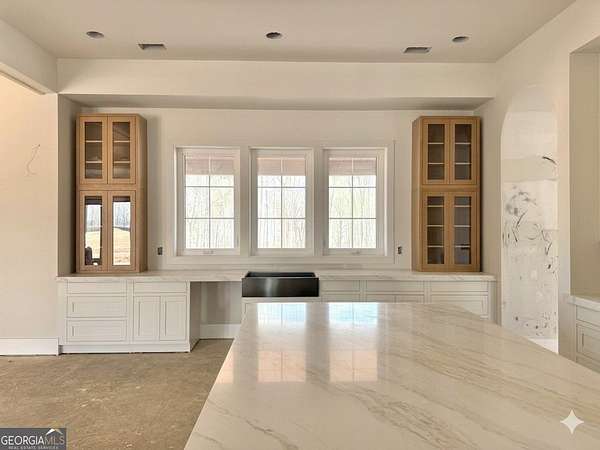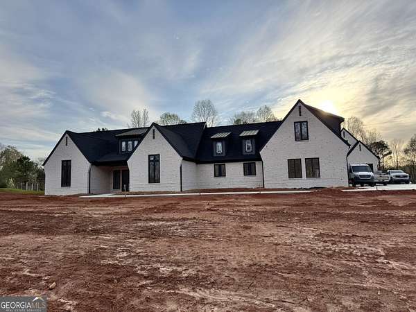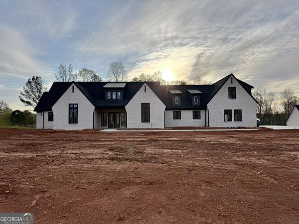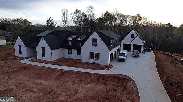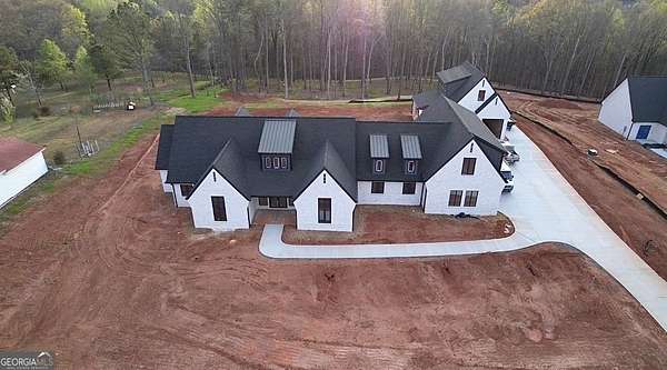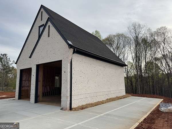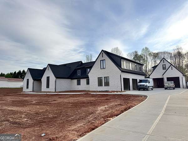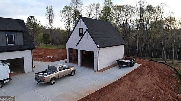 NEARING COMPLETION - This stunning custom home sits on a private 3.35-acre lot in desirable Jackson County with beautiful natural surroundings. Located just minutes to I-85 and within the brand new Heroes Elementary and Legacy Knoll Middle School school zone. No HOA allows for freedom to use this spacious lot as you please withe peace of mind of no passing traffic as this is a dead-end road. The backyard is perfectly suited for a future pool and features mulched walking trails that lead down to a peaceful creek, creating a unique outdoor retreat. Designed with both elegance and comfort in mind, the home offers an open-concept floor plan, abundant natural light, and rich hardwood flooring throughout. The chef's kitchen features a large island, custom wood cabinetry, and a premium stainless-steel appliance package-perfect for entertaining. Attached to the kitchen is a hidden butlers pantry allowing for privacy while entertaining. The striking exterior showcases light brick and shake siding, a three-car garage, and professional landscaping. An additional detached two-bay garage boasts 10' garage doors with 12' ceilings and so provides endless possibilities for storage, a gym, pool house, guest house, etc. The second floor of this detached garage is ready for drywall and your finish. This home also features an extended driveway for RV, boat, etc parking. Enjoy outdoor living on the oversized, covered back porch, ideal for relaxing or entertaining. This home is currently on a gravel road but the paving of the road is on the schedule. Currently under construction with expected completion date of May 2026 - Completed photos coming soon. *Please be advised that some of the photos in this listing have been rendered to show potential. All interested parties are encouraged to conduct their own due diligence.*