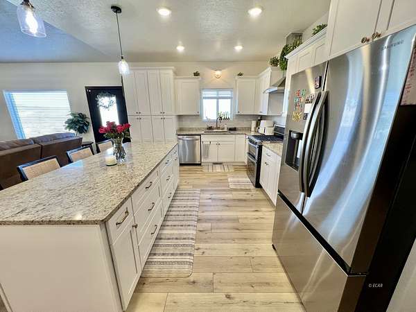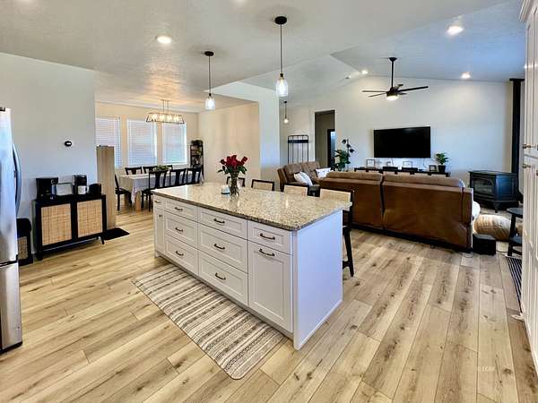 Welcome to this beautiful 4-bedroom, 3.5-bath home located in the desirable community of Spring Creek. Designed with a spacious split floor plan, this home offers both privacy and comfortable living on the main level. The large living room features vaulted ceilings, creating an open and inviting space perfect for relaxing or entertaining with a pellet stove. The spacious kitchen is the heart of the home, offering an impressive 8-foot island, abundant countertop space, and plenty of room for cooking and gathering. Just off the kitchen, the formal dining room showcases three large windows, filling the space with natural light. The primary suite includes a generous bathroom with a dual vanity, jetted soaking tub, and separate shower stall. A large laundry room provides added convenience and functionality. Above the garage, you'll find a versatile bonus space that can be used as a family room, office, guest area, or hobby space. This well-designed home offers space, comfort, and flexibility both inside and out-ready for you to make it your own. Listing Agent is related to Seller.
