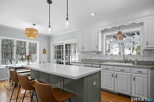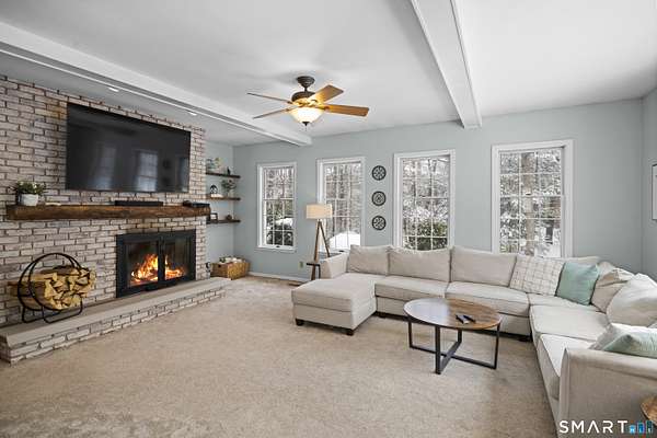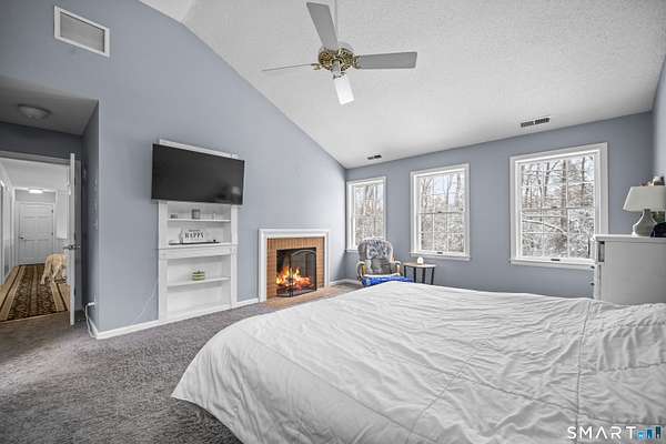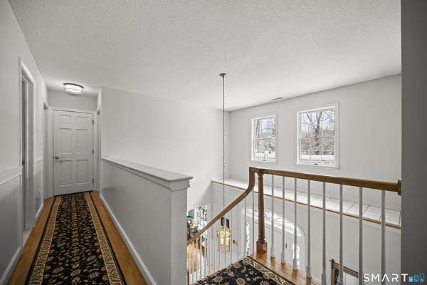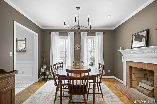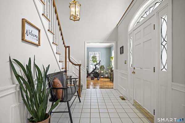 Experience timeless elegance and unparalleled privacy at this exceptional colonial estate, gracefully sited on 4.73 secluded acres in one of West Simsbury's most coveted cul-de-sac neighborhoods. This home has 4 brick fireplaces, 5-bedroom first bedroom or library, 2x6 construction, Anderson casement oversized windows, open floor plan, solid pine doors, tons of crown molding. Step inside to a grand two-story foyer adorned with wainscoting, setting a sophisticated tone from the moment you enter. This residence offers a rare level of warmth and character with four fireplaces, each enhancing the ambiance of its surrounding space: a distinguished hearth in the formal dining room, an elegant focal point in the formal living room, a fireplace anchoring the sunken family room, and a romantic fireplace in the primary suite. At the heart of the home lies a gourmet kitchen featuring custom solid wood raised panel cabinetry, granite countertops, a generous center island with seating, and an inviting eat in area framed by French sliders. The kitchen opens seamlessly to the sun filled family room, where expansive windows capture serene views of the surrounding landscape and bathe the space in natural light. The formal living room, with its own set of French doors, leads to a charming, screened porch-perfect for quiet mornings, evening cocktails, or simply enjoying the peaceful setting. Upstairs, the luxurious primary suite offers a true retreat with a vaulted ceiling. Abuts walking trails