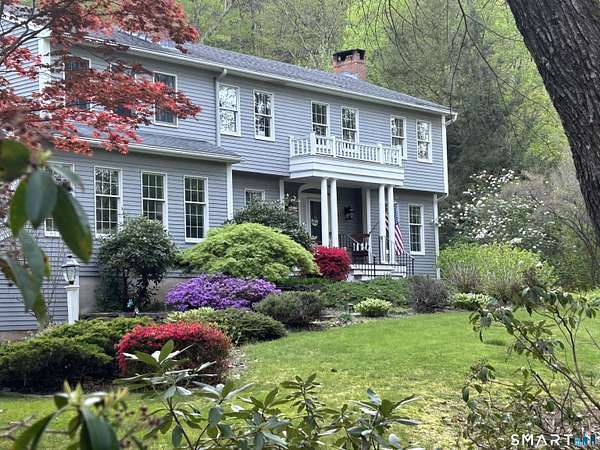Experience timeless elegance and privacy in this exceptional colonial estate set on 4.73 secluded acres on a coveted West Simsbury cul-de-sac. Featuring 5 bedrooms plus a versatile first-floor room ideal for an in-law suite, office, or library, the home showcases quality craftsmanship with 2x6 construction, oversized Andersen casement windows, solid pine doors, and crown molding. A grand two-story foyer with wainscoting sets a refined tone. The spacious family room centers around a striking fireplace and flows into a sunlit kitchen with granite countertops, a large island, and an eat-in area with French sliders. Expansive windows fill the home with natural light and frame serene views. The formal living room opens to a charming screened porch-perfect for relaxing while enjoying peaceful surroundings and the sound of a nearby waterfall. Upstairs offers five generous bedrooms, including a luxurious primary suite with vaulted ceilings, an ensuite bath, and walk-in closet. Outdoor enthusiasts will love direct access to nearby trails, including the Bog Trail and Cathles Trail with scenic overlooks and waterfall views. Conveniently located just minutes from Simsbury Farms Recreation Complex, offering golf, swimming, ice skating, and more.