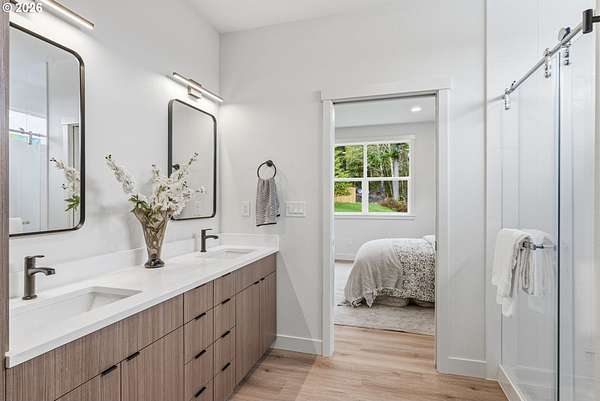 Beautifully designed modern farmhouse...new construction on 2 acres, offering the perfect blend of contemporary style and peaceful rural living. This four-bedroom, three-bath home is filled with natural light, highlighted by a vaulted open-concept living space and expansive windows.The deluxe kitchen features ample cabinetry, quartz countertops, stainless steel appliances with warranties, and a fully functional walk-in pantry complete with additional counter space and outlets. The great room seamlessly opens to a covered patio-perfect for outdoor dining and entertaining.The luxurious main-level primary suite includes a private bath with double vanities, a walk-in closet, and convenient access to the laundry room. An additional bedroom with a walk-in closet is also located on the main level.Upstairs, you'll find two more spacious bedrooms and a vaulted bonus room, offering flexibility for a variety of needs.Outside, enjoy scenic views and plenty of space to roam on the 2-acre property. The large turnaround driveway provides ample parking, including room for an RV.Located just minutes from the charming downtown area of Castle Rock, with local dining, shops, and amenities nearby, this home offers the perfect balance of small-town living and modern convenience.Schedule your private tour today-this exceptional property has everything you're looking for.