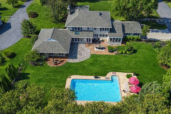 WOW!!! Discover an exquisite blend of luxury and comfort in this stunning 1949 contemporary residence nestled on 1.75 acres in the historic Mount Wolf borough with additional building lot included in sale. This meticulously 2024 renovated home boasts 5 spacious bedrooms and 3.5 bathrooms, offering an unparalleled living experience. Step inside to find a harmonious fusion of modern design and classic charm. The interior features ceilings adorned with crown moldings, freshly refinished hardwood floors, and abundant natural light streaming through brand new energy-efficient windows. The gourmet kitchen is a chef's dream, equipped with stainless steel appliances, a double oven, and a generous island, perfect for entertaining. Additional highlights include a butler's pantry with extra stainless steel sink, garbage disposal, refrigerator and extra dishwasher perfect for easy cleanup after entertaining. Enjoy fall and winter evenings by one of the three stylish fireplaces, featuring glass doors and brick accents and new stainless steel lined chimneys for added safety or cozy up in the library with a good book by the fire on the built in couches. The 1st floor spacious master suite offers beautiful custom built-ins, vaulted ceilings, and private patio. The spa-like master bath includes his and hers walk-in closets and toilet rooms, jetted garden spa tub, walk-in shower, and large double sinks. Private entrance master suite would be ideal for multigenerational living or in-law quarters. 2nd floor offers another master suite with numerous built in cabinets with a large bathroom and office or nursery attached. The 2 other large bedrooms with ceiling fans and bathroom make for plenty of room for your family and guests. With a large commercial tankless on demand gas hot water heater, everyone is ensured an unlimited hot shower at the same time ensuring easy morning routines. Indulge in your private oasis with a heated saltwater pool surrounded by a firepit, lush gardens and mature trees, creating a tranquil escape. The meticulously low-maintenance landscaped grounds featuring a charming extended patio, ideal for grilling and al fresco dining. With a side-entry garage and ample driveway parking, convenience meets elegance in this exceptional property. No power no problem, this property comes with 2 large whole house generators powered by propane that instantly kick on in a power outage. In addition, this large house has additional lightning protected grounding system ensuring the house will never experience lightning strike exposure. Full waterproofed basement with 3 sump pumps offers a ton of storage, game/exercise room, workshop area, and large utility room. Experience the ultimate luxury living in this immaculate move-in ready freshly renovated retreat! Northeastern School District - Schedule your private tour today!