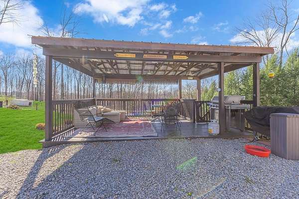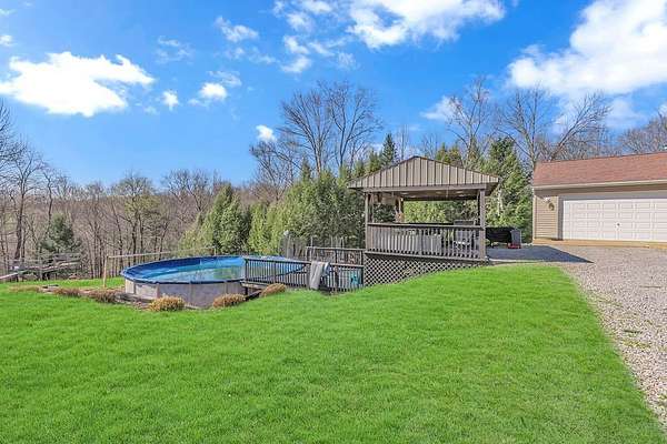 SET ON NEARLY 4 ACRES, THIS 2 STORY, 4 BEDROOM, 3 FULL BATH HOME OFFERS THE SPACE, FLEXIBILITY AND FEATURES TODAY'S BUYERS ARE SEARCHING FOR. LOCATED IN A HIGHLY DESIRABLE NO-ZONING AREA, THE POSSIBILITIES ARE ENDLESS. WHETHER FOR HOBBIES, STORAGE OR RUNNING A BUSINESS FROM HOME. THE STANDOUT 6 CAR GARAGE IS A RARE FIND. INSIDE, THE FINISHED LOWER LEVEL CREATES THE IDEAL RETREAT WITH A COZY FIREPLACE AND A WET BAR, PERFECT FOR ENTERTAINING OR UNWINDING. STEP OUT FROM THE DINING AREA ONTO A SPACIOUS DECK AND TAKE IN THE PEACEFUL WOODED VIEW, OR ENJOY THE ABOVE GROUND POOL AND PAVILION. WITH ADDITIONAL OUTBUILDING AND WORKSHOP POTENTIAL, THIS PROPERTY TRULY OFFERS ROOM TO LIVE, WORK AND PLAY! IF YOU'VE BEEN SEARCHING FOR PRIVACY, VERSATILITY, AND SPACE TO SPREAD OUT-THIS HOME IS IT!!
