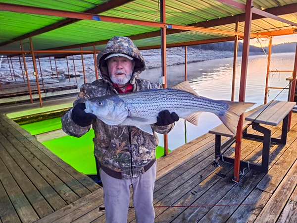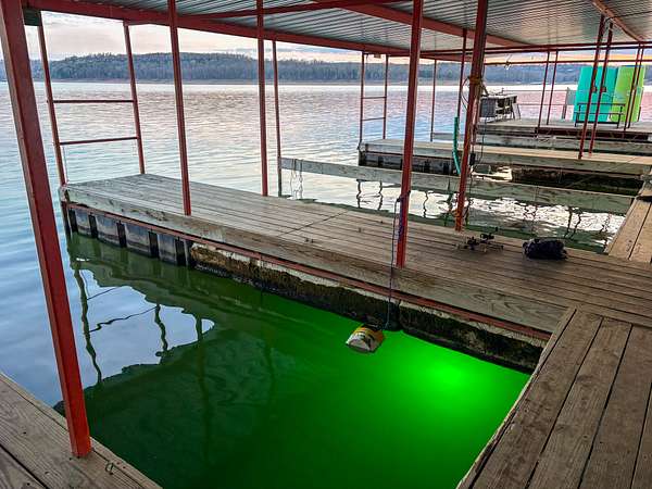 Deep water off the end of the dock (approximately 65 feet at normal pool)