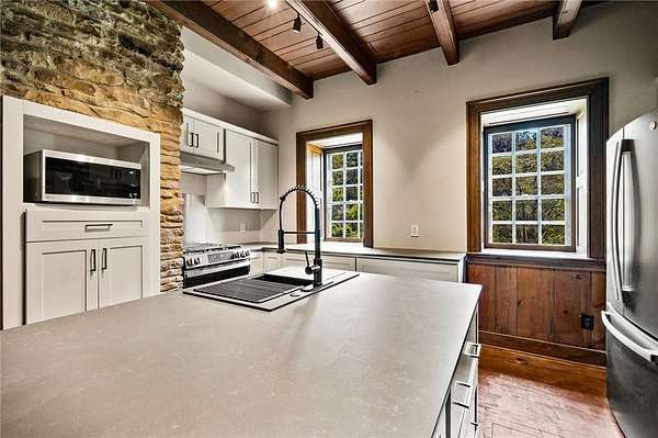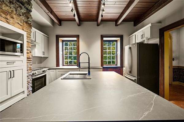Historic Charm Meets Modern Comfort at 117 White Thorn Road, New Alexandria, a stunning property that once served as The Old Congruity Tavern, dating back to circa 1820. This unique home blends timeless historical character with updated amenities, offering the perfect mix of past and present for your next chapter. Walking through the front door, you are greeted with a grand foyer that takes you back in time. The first floor is a mixture of old charm with modern conveniences with an updated kitchen, first floor laundry, and 3 fireplaces creating a rustic atmosphere. The second floor features 4 large bedrooms and a full bath along with 3 more fireplaces. Outside you will appreciate a 6 car garage with heat and electricity, a large barn with 3 stalls, well water and electricity and sits on 4.38 acres. You will also find the old summer kitchen that brings that old charm to life outdoors. This home truly is a piece of the past with many possibilities for its new owners. Make it your own!