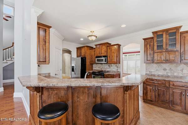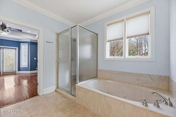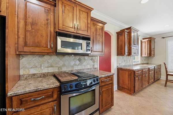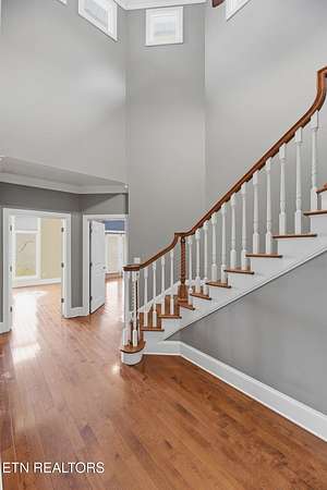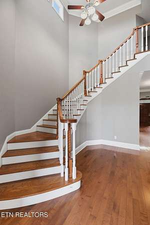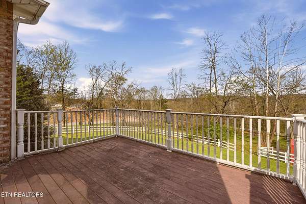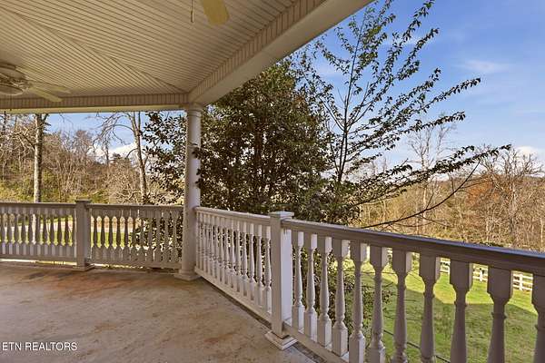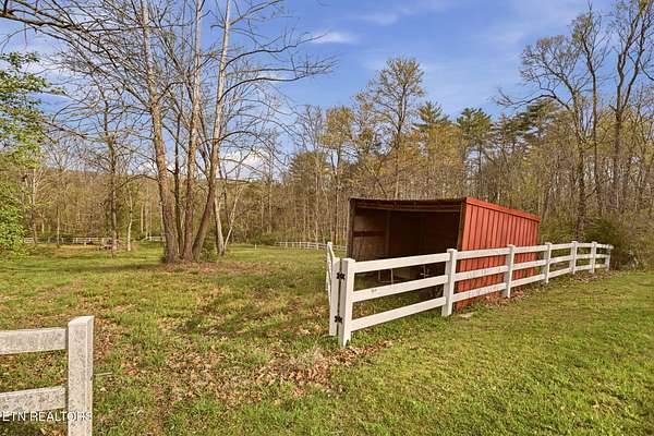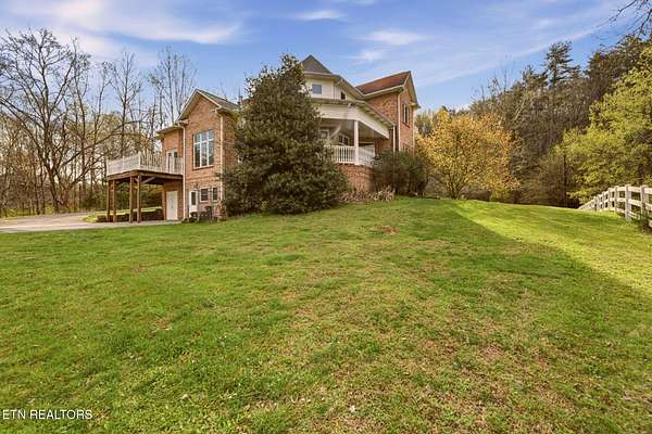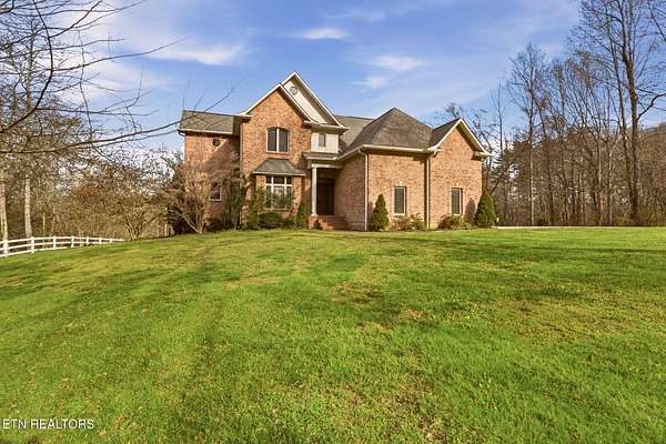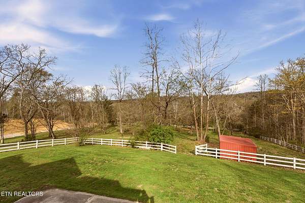 Welcome to an extraordinary opportunity to own a rare 5-acre mini horse farm estate nestled within the city limits of Oak Ridge--where refined living meets peaceful countryside charm. Set within a private, serene enclave of estate homes, this exceptional property offers the perfect blend of urban convenience and pastoral beauty, complete with rolling acreage, western sunset views, and a charming fenced pasture with barn. From the moment you arrive, the property captivates with its classic white fencing, meandering driveway, and stately presence set gracefully back from the road. The custom-built basement rancher is thoughtfully designed to showcase the surrounding landscape, offering breathtaking views from the wraparound covered porch and a private deck off the primary suite. Inside, the home unfolds with elegance and intention. A welcoming foyer opens to a formal dining room and an expansive living area where soaring ceilings, a cozy fireplace, and walls of windows invite natural light and frame picturesque views of the estate. The kitchen and den flow seamlessly for both everyday living and entertaining, while architectural details such as arched doorways, crown molding, and rich cherry flooring create a timeless, sophisticated ambiance. The main level features a stunning private office with vaulted ceilings, fireplace, and direct access to the veranda--an inspiring space to work or unwind. The primary suite is a true retreat, complete with trey ceilings, French doors leading to a secluded deck, and a luxurious five-piece bath with walk-in closet. Upstairs, a grand staircase leads to three spacious bedrooms, a Jack-and-Jill bath, an additional full guest bath, and a versatile bonus room. A generous third-level space provides approximately 900 square feet of floored storage, offering exceptional functionality. The lower level expands the possibilities even further with an immense workshop, hobby space, half bath, and a vast unfinished area ready to be customized--ideal for recreation, a home gym, or additional living quarters. Whether you're seeking a private equestrian retreat, hobby farm, or luxury estate with room to roam, this one-of-a-kind property delivers unmatched lifestyle and location--just minutes from everything Oak Ridge has to offer Property SOLD AS IS. Inspections for information only.