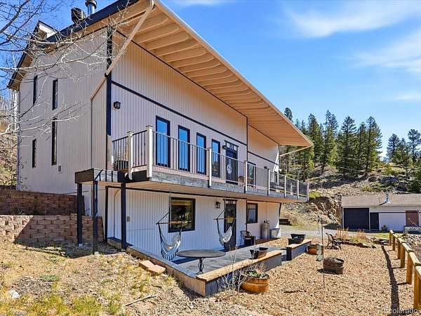 19.59 Acres of the most peaceful and private acreage in Gilpin Co! Updated 3BR/4Bath home, heated shop, log sauna, and more! You even have your own beautiful Aspen groves! Accessible acreage with rock outcroppings, forrest w/multiple tree species, and views galore. The old mining road allows access to the entire property to hike trails, cross country ski, camp, and use your ATV's! A peaceful meadow high above the residence awaits you for morning coffee or picnic. Elk, Moose, Deer, and Turkey regularly stop by to say hi. Soaring vaulted ceilings greet you on the main level, with amazing views from the wrap around deck. 3 good sized bedrooms all have walk in closets, and all 4 baths have been remodeled. Office/loft with built in desk and cabinets. Full Stainless Steel appliance package, Corion countertops, marble tile, wood floors, new vanities, cabinetry, and plenty of storage. The Southern exposure warms the residence with passive solar in the winter and melts the snow on the ground without effort. After a long day, slip into the newly remodeled log Sauna with Cedar benches and new stove! 720 square foot heated shop with wood burning stove, radiant heaters, workbenches, lighting, and 200 Amp/220 Volt service. new well pump, new boiler, new interior and exterior paint, lighting, tile, and more. Spacious greenhouse with water collection system! Fire pit, new woodshed, established berry patch, and 3 tier rock pond! Plenty of parking including RV spots, and driveway was just re-sealed last summer. New front security gate and wireless camera system. You can't beat the location just 8 miles to the Continental Divide and all of the high country lakes, National Forest, and wilderness. Just minutes to Black Hawk, Central City, Hidden Treasure mtn bike park/hiking area, and Eldora Ski Area! Words can't describe this mountain paradise just a short drive to the city. *FREE 1-YEAR RATE BUY DOWN & FREE APPRAISAL W/SELLER PREFERRED LENDER*