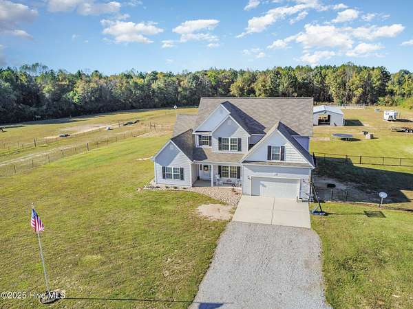 Your Equestrian Oasis Awaits Escape to a world of refined rural luxury where every detail is designed for the discerning homeowner and devoted equestrian. This exquisite 2021-built residence, spanning 10 pristine acres, is more than a home; it's a horse lover's dream realized. Step inside and discover a haven of comfort and privacy. The main floor features two magnificent primary suites, each a sanctuary with its own private, spa-like en-suite and a walk-in closet, providing the perfect solution for multi-generational living or pampered guests. Upstairs, two more bedrooms, a versatile bonus room, and an open loft offer a wealth of flexible space for family, a home office, or a personal gym. Gather with loved ones in the formal dining room, a space of elegant sophistication, before retiring to the expansive front porch. With enough room for a collection of rocking chairs, it's the perfect spot to sip your morning coffee or watch the sunset cast a golden glow over your private estate. A Horse Lover's Paradise Beyond the home, the 10 acres of flat, usable land are your delight. Imagine the possibilities for enjoying your own equestrian haven, complete with a state-of-the-art barn ready for your horse, fenced in pasture, and lush paddocks for grazing. This property offers even more potential to expand the fencing or enjoy the wooded area with trails for a peaceful ride or stroll. The expansive, open space is ready to be transformed into the perfect home for your four-legged companions, solidifying this property as the ultimate destination for those who cherish the equestrian lifestyle.