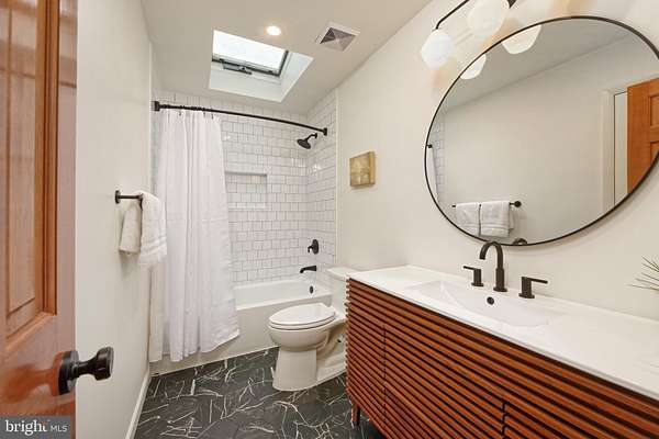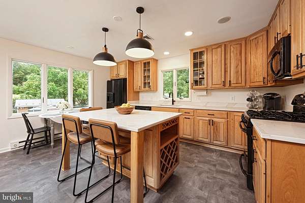 - Breakfast Area, Built-Ins, Ceiling Fan(s), Combination Dining/Living, Dining Area, Eat-In Kitchen, Entry Level Bedroom, Island Kitchen, Open Floor Plan, Recessed Lighting, Skylight(s), Table Space Kitchen, Tub Shower Bathroom, Upgraded Countertops, Walk-In Shower Bathroom, Wet/Dry Bar, Window Treatments, Wood Floors