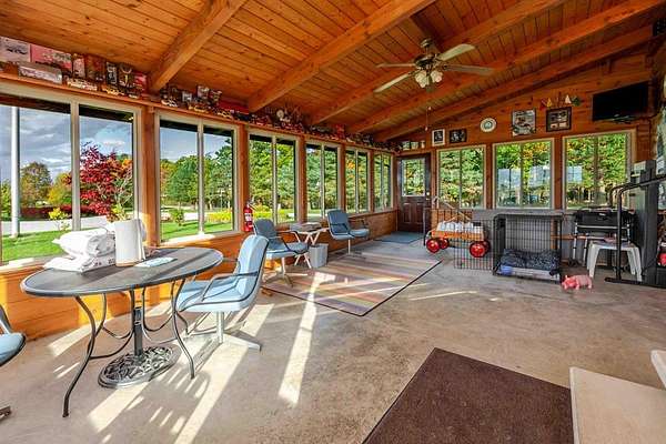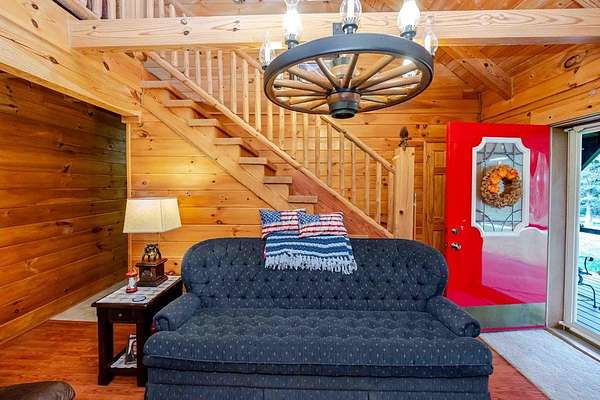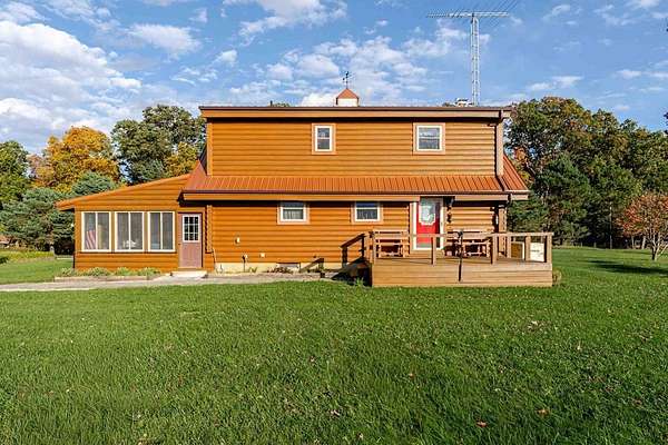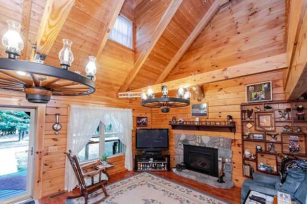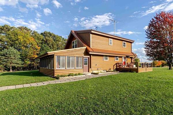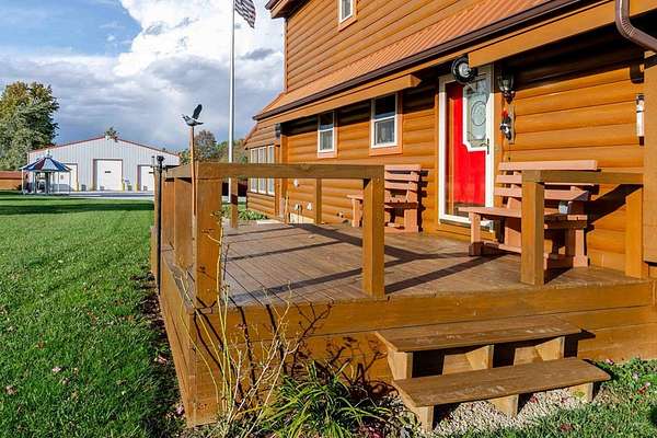 Est $3,370/moExquisitely Custom built Log Cabin. With craftsmanship and attention to detail inside and out. This home features a wood interior to compliment the log cabin exterior. The loft provides additional family room or could transform to another bedroom. Enclosed porch and open back deck to enjoy the views of the property. The finished basement offers additional living area. The attention to every detail throughout this home is a must see. The 54' x 62' Pole Building has a loft and 3 garage door, car lift, work benches, rain catching system. Geo thermal, Kohler back up generator for both the home and garage.