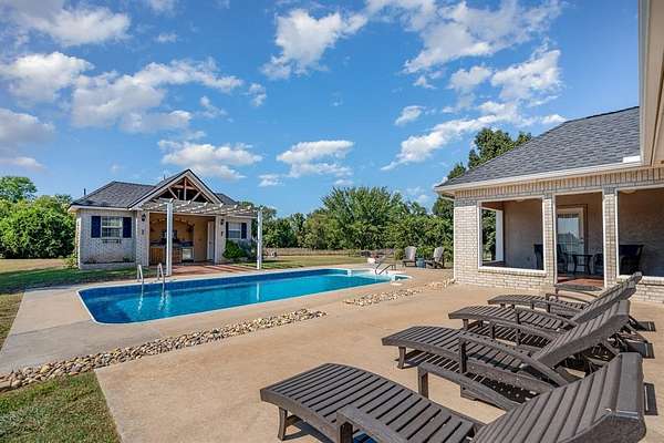 Beautiful home nestled on 5 acres in Westmoore Schools.... upgraded and updated home with amenities such as inground pool with new liner in 2023.. pool house and outdoor kitchen, large covered porches, updated roof, hvac and tankless hot water in 2022 & 2023. Brick woodworking shop and the fully fenced property with plenty of room to roam. Located just minutes from I-44 and South OKC's newest shopping and dining district. No HOA allows you freedom of space while still being close to the City. Schedule your showing today!!