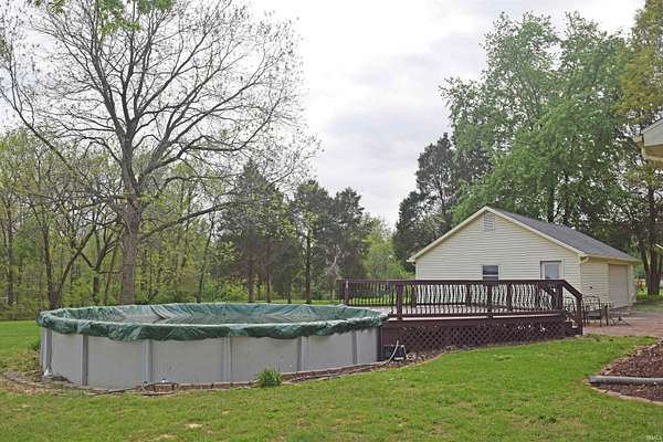 Hurry! This country charmer is exactly what you have been searching for! Beautiful brick bungalow situated on a picturesque 2.25 acres in highly desired Saint Wendel. Idyllic peaceful country living offering both privacy and room to enjoy the outdoors! The main level features a spacious eat-in kitchen, living room, a cozy den with an inviting brick fireplace, 2 bedrooms with ample closet space and a full bathroom. The basement boasts a large family room, full bathroom, laundry area with chest freezer, a bedroom and another room that's being used as a 4th bedroom with a nice sized walk-in closet. Take a dip this summer in the 27' above ground pool with newer Trex decking. The huge 32x23 detached 2-car garage is very functional and is a work shopper's delight. There's an abundance of room for play in the expansive partially wooded backyard with a pond and country setting, ideal for relaxing and entertaining. The long and wide driveway provides plenty of room for parking along with a poured patio by the garage. There are hardwood floors under carpet in living room, hallway, and bedrooms. New roof on house and garage in 2024. Seller is providing a one year home warranty for buyer's peace of mind. Don't let this one slip away!