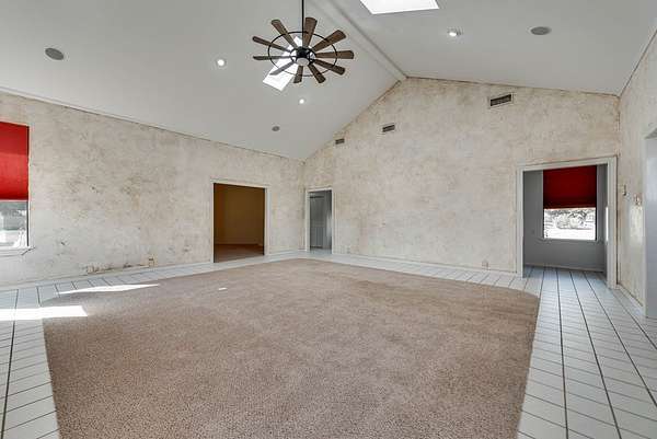 - Auto Garage Opener, Carpeting, Ceiling Fan(s), Pantry, Shades/Blinds, Skylight(s), Tile Flooring, Wood Shutters