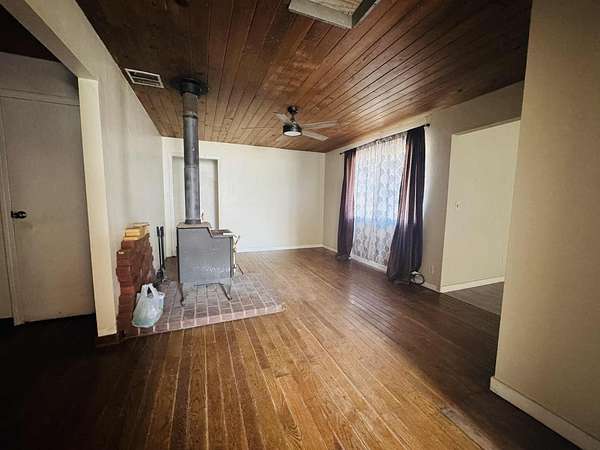 Separate living and family rooms, freestanding wood burning stove, tongue and groove wood plank ceilings and hardwood flooring. Property is Certified