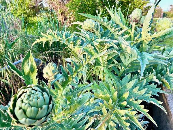 Organic, 12 x 12 cinder block produce cooler & multiple concrete planters.