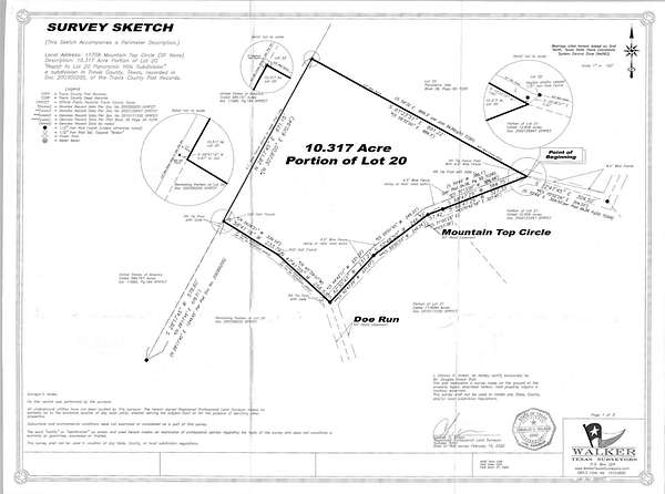 A remarkable opportunity to homestead or invest in 10.317 acres in the heart of the Texas Hill Country. Located within Leander ISD and tucked into a quiet, scenic stretch of landscape, this property borders a 580-acre section of the Balcones Canyonlands National Wildlife Refuge-part of more than 25,000 acres of federally protected habitat-offering lasting privacy, unspoiled views, and the peace of mind that comes with land preserved for generations. The 10.317-acre tract is surveyed from a larger 34.851-acre property, giving buyers flexibility to expand. Sellers are open to negotiating additional acreage, including the full 34.851 acres-featuring a 2-bed, 2.5-bath home, oversized garage/workshop, septic, well, and electricity-or a 24.534-acre option that includes the home and improvements while preserving a generous natural buffer. Whether planning a custom residence, equestrian retreat, recreational escape, or investment in a high-growth corridor, the land offers exceptional versatility. Its rolling terrain, location within the ETJ of Lago Vista, and lack of subdivision restrictions support a wide range of uses-from barndominiums to short-term rentals to multi-generational living. Pedernales Electric can be extended to the tract, and Jonestown Water Supply Company has confirmed a water-line extension is possible-making residential or development plans that much more attainable. The area's minimal permitting requirements, accessible utilities, and limited oversight help keep the path to building refreshingly straightforward. Sellers are also including a $5,000 credit toward buyer closing costs - a strong incentive that adds real value to this Hill Country opportunity. About 20 minutes from Cedar Park and under an hour from Austin, the property offers easy access while remaining peacefully removed. Its usable acreage, respected school district, and protected surroundings make it a standout in western Travis County.