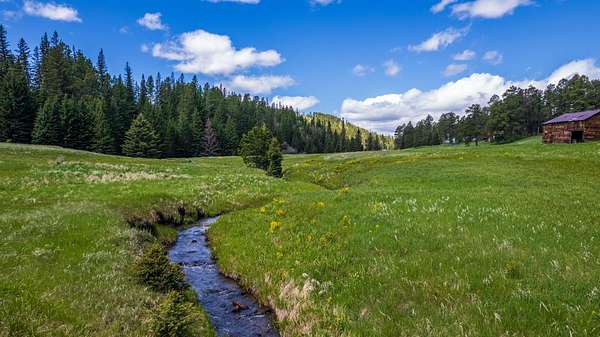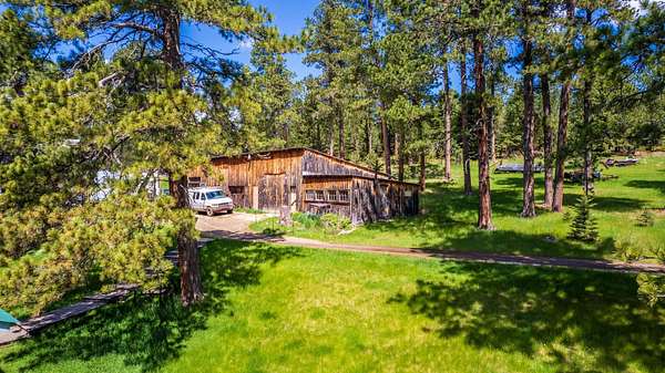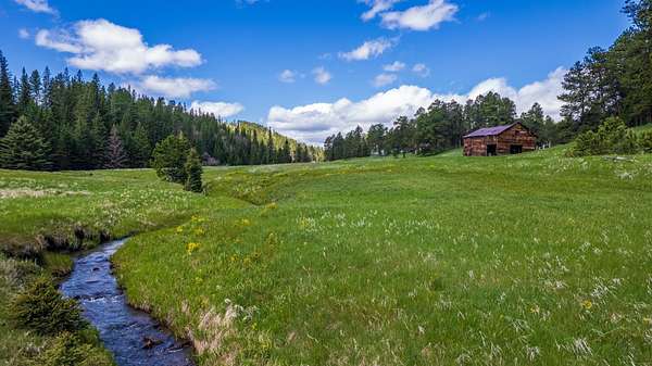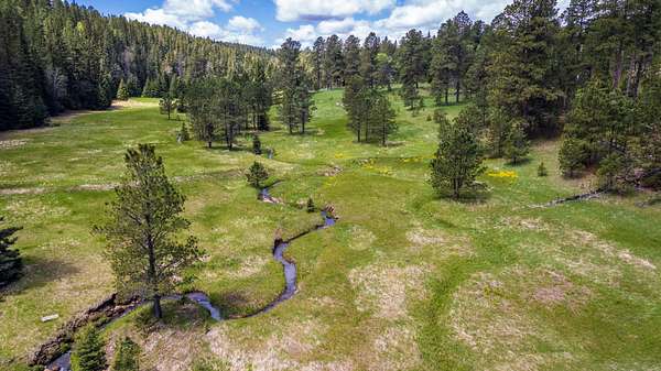 Where the wilderness is your only neighbor—AND IT STRETCHES FOR MILES! Discover a rare piece of Black Hills heaven on this stunning 68+ acre property, almost entirely surrounded by USFS lands. Enjoy the convenience of county-plowed access right to your driveway. The land features a sprawling meadow edged with spruce, pine, and aspen trees, creating an idyllic setting. As a Homestead Entry Survey (HES) site, it holds historical charm with the remains of the original homestead still visible beside the babbling Bear Butte Creek, which flows across the entire property. Wildlife enthusiasts will be thrilled by the frequent elk sightings, so abundant that maintaining the fences has been stopped. The creek naturally attracts a variety of wildlife, enhancing the property's allure. Adventure awaits with miles of USFS lands and roads to explore right from your doorstep. The property includes an older, livable, 3-bed, 2-bath manufactured home, a nearly finished charming she-shed, and several rustic storage buildings, and a barn. While these structures are usable and filled with the owner's belongings, they contribute minimal value compared to the pristine land. The owners request some possession time post-closing to clear their personal property. Come explore this Black Hills Hidden treasure and experience a piece of pristine, untouched nature!