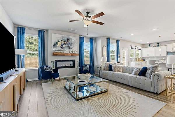 Seller incentives available+ HOA Fees Covered 1st year! Home includes all Samsung Bespoke Appliances, LG Front load washer / dryer and blinds throughout. Luxury meets lifestyle in this like-new 5 Bedroom retreat! Tucked away in a quiet cul-de-sac on nearly 2 acres, this home delivers modern elegance, natural light, and an open floor plan that lives as beautifully as it entertains. The main level highlights include a coffered-ceiling dining room, executive trim package, and a versatile 5th bedroom for guests or a home office. The chef's kitchen features quartz countertops, Samsung Bespoke appliances, and an oversized island overlooking the family room. Upstairs, a spacious loft adds flexibility, and the expansive primary suite offers a sitting area plus a spa-inspired ensuite with stone-core flooring, soaking tub, and walk-in shower. Every inch of this home exudes quality, space, and sophistication. Don't just dream it-live it. Schedule your private tour today and experience the comfort, elegance, and space this home offers.