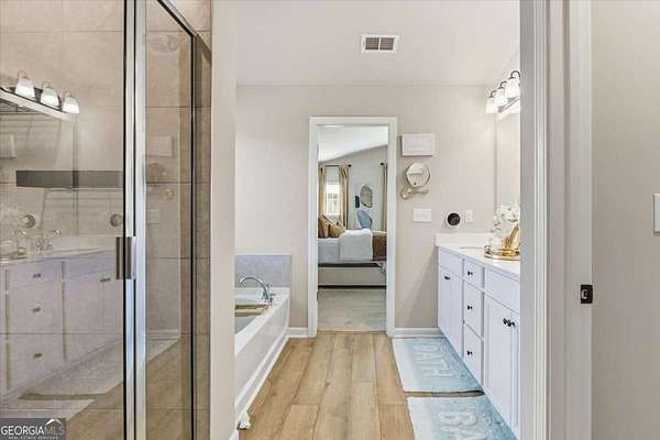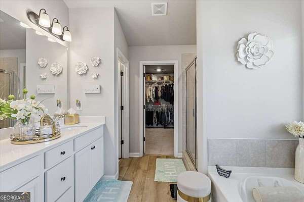 - Double Vanity, High Ceilings, Separate Shower, Soaking Tub, Tile Bath, Walk-In Closet(s)