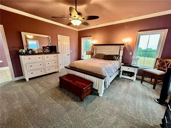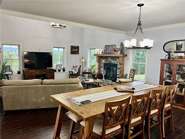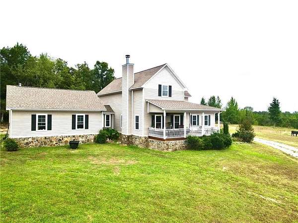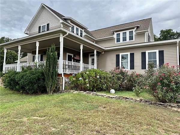Est $3,086/mo48 Acres m/l with 2640 sq ft custom built home & approximately 704 sq ft separate guest house. The main home has 3 bedrooms, 3 full bathrooms, one 1/2 bath, garden tub, heated floor in the master bath w/thermostat & timer, granite countertops throughout, walk in closets, sunroom, 2 car garage, fireplace, covered front porch, and beautiful Mountain View's. The property has year around springs, 2 ponds, barn, shed, pasture, woods , and wildlife.