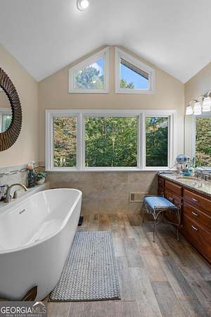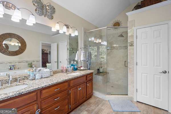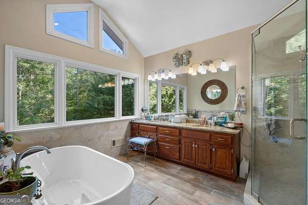 - Double Vanity, Master On Main Level, Separate Shower, Soaking Tub, Split Bedroom Plan, Tray Ceiling(s), Vaulted Ceiling(s), Walk-In Closet(s)