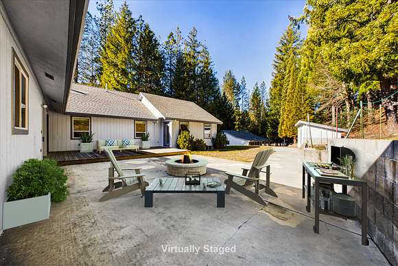 *NEW PRICE REDUCTION* Welcome to your country ranch in Trinity County, CA, featuring an immaculate large custom home on 63+ acres of beautiful land, nestled along the Mad River and just minutes from boating, fishing, and swimming in Ruth Lake. The well-built & turn-key home enjoys all the amenities a discerning buyer wants: radiant heat flooring in the bathrooms, updated kitchen, plenty of storage, large walk-in closet, wraparound decks and a patio area with fire pit to enjoy summer evenings with family & friends after swimming in the river. There's an additional sleeping/office area connected to the attached garage and a cozy woodstove and Starlink to keep you connected. The property includes a separately metered 24x32 shop/garage, a 24x70 permitted Ag building, 8x20 wood/storage shed, deeded water rights and a permitted well. The property is fenced and cross-fenced and would make for an excellent horse property with plenty of room for all your toys & equipment. Come create your dream rural life in a gorgeous part of remote Northern California.