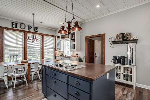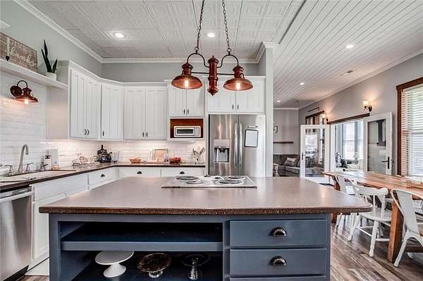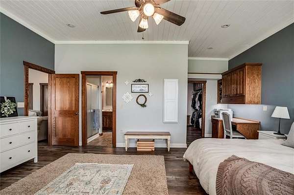 - Ceiling Fan(s), Custom Cabinets, Kitchen Island, Pantry, Stained Cabinets, Walk-In Closet(s)