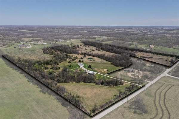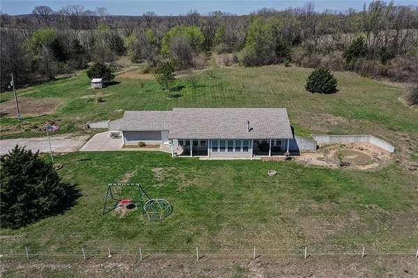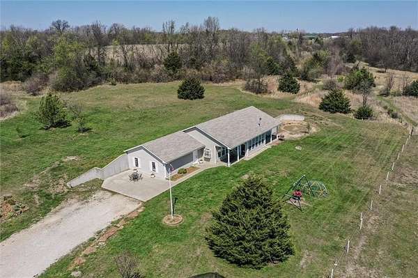 Whoa! This is the one you've been waiting for! Ranch home, outbuilding on 37.8 fenced acres! Built in 2007, this 2,188 sq ft. custom built 4 bdrm, 2 full bath, no steps, RANCH. Soaring 10 ft. ceilings, loads of natural light, open, modern floor plan with high end fixtures, flooring and details. Generous room sizes, delightful sun porch, custom cabinets and solid wood trim and doors, humongous pantry, Corian counter tops, see through cabinet showcase built-ins...the list goes on an on! Roof only 5 years old, 2 yr old HVAC, dishwasher is less than a year. Dining room holds table that seats 10! Property has a fantastic 30'x40' metal outbuilding w/concrete floors & 200amp box, two garage doors on one side and a lean-to on the other. This land...there's two tracts being sold here, a 32.5 and a 5.3 acre plat. There's two entrances, a small pond, chicken coop, some electric fencing in pastures. Orchard producing peach, apple, pear trees, persimmons, too! walking trails throughout property! It's really beautiful! Peaceful, country living just minutes from downtown Holden (@10 min), 25 min to Warrensburg and about hour from Kansas City International Airport. No HOA so build what you want on this sprawling acreage. Great for hunting, cattle, and much more! Professional photos scheduled for next week, including drone shots of the land, and home will be available for showings next Thursday, April 9th.