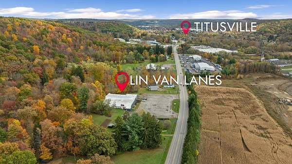 Don't miss this rare opportunity to own Lin Van Lanes, a thriving, fully operational bowling and entertainment center in Titusville, PA. Spanning 17,116 +/- sq. ft. on 7.19 +/- acres of prime commercial land, this turnkey business features 16 bowling lanes, locker rooms, a pro shop, skills games for extra income, a pool table and entertainment area, and a golf simulator for rental and added fun. Lin Van Lanes is well-established with tons of booked bowling leagues, birthday parties, and community events providing strong recurring cash flow year-round. The property includes a workshop for bowling supplies and ball maintenance, and the sale comes complete with real estate, business, and all equipment-ready for a seamless transition. Whether you continue its success or expand offerings, this is a cash-flowing, community-favorite destination with endless potential in a convenient Titusville location.