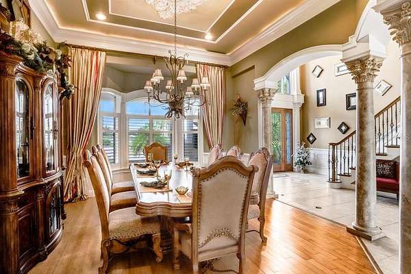 From the moment you arrive through the private electric gate entrance, this property delivers privacy and distinction. The custom residence encompasses 7,060 square feet of living space and 10,541 total square feet, offering five spacious bedrooms, six and a half bathrooms, and a private office. Expansive windows throughout the home frame stunning views of the lake, creating a bright and inviting atmosphere.