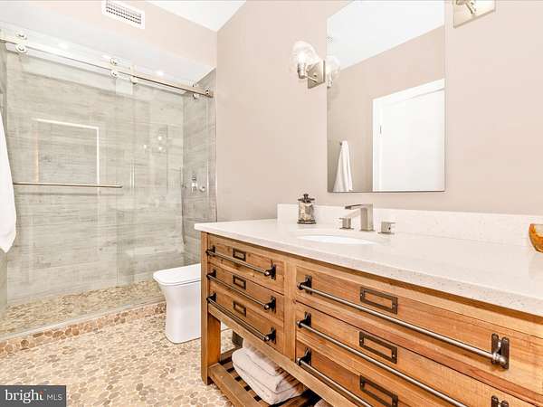 Welcome to this well maintained custom architectural masterpiece with over 9300 total finished square feet of resort-style living space and smart technology integration. From the moment you step inside, this custom-designed home delivers the WOW factor. Soaring ceilings, massive railroad trestle beams with iron brackets, and walls of glass create a dramatic open floor plan with panoramic views of the resort-style pool and private backyard retreat. Blending rustic warmth with cutting-edge features, the home has a brand-new roof with gutter leaf guards and a transferable lifetime labor warranty. It's proudly recognized as Maryland's first certified healthy home, featuring geothermal heating, a whole-house HEPA air filtration system, and a whole-house humidifier for year-round family health and comfort. Inside, the layout is as functional as it is breathtaking. The main level features 4 or 5 bedrooms and 3 full custom designed baths and one-half bath. A grand loft overlooks the great room and is a sanctuary itself with an additional half bath. An integrated Polk & Klipsch audio system with ceiling-mounted subwoofer delivers cathedral-like sound in both the kitchen and great room. The finished lower level includes 2 more bedrooms which can be used for family or Au Pair help with an additional 2 full professionally designed baths, a gym with exercise equipment (some of which conveys), and a media-ready rec room. The luxurious primary suite includes a spa-like bathroom with modern oversized tile and a heated tile floor. The dual home office spaces provide everyone with a quiet place to work comfortably and privately from home. There is also a elevator reaching all 3 levels. The chef's kitchen is amazing and was designed by world-renowned architect Shorieh Talaat with entertainment on a grand scale in mind. It includes Wolf and Sub-Zero appliances, dual dishwashers, a smart microwave, a main, prep and coffee bar sink for a total of 3 separate sinks, making this a truly unique kitchen enhanced by sleek concrete countertops with ample prep space. This kitchen is capable of serving up to 50 guests. Step outside to your own private oasis; the centerpiece is a showstopping custom pool surrounded by 2,000+ sq ft of cool-to-the-touch porcelain tile (a $250,000 project) and 10-person hot tub. The professional landscaping with dramatic stone boulders and forest conservation easement behind the home affords total privacy. The built-in outdoor kitchen offers effortless space for entertainment, and the fully fenced backyard is designed for comfort and seclusion. Smart Home and efficiency features include: five-zone heating and cooling system with four smart thermostats, smart microwave, smart washer and dryer, whole-house intercom system, 360 degrees smart security surveillance system, automatic natural gas-powered whole-house generator, garage doors with app-controlled access, and a garage refrigerator. This is a rare opportunity to own a home that combines architectural excellence, advanced smart-home technology, energy efficiency, and resort-style amenities-all in one unforgettable property.