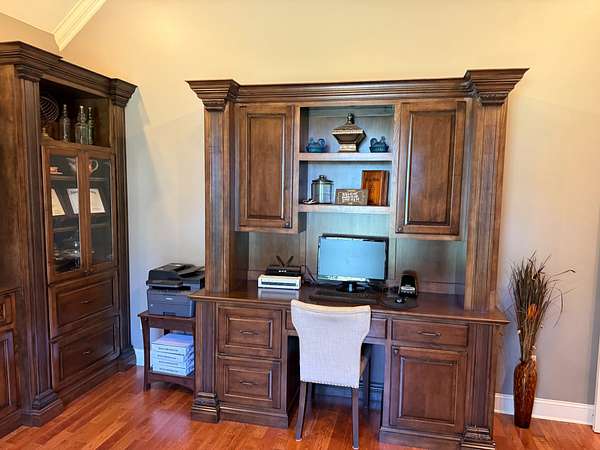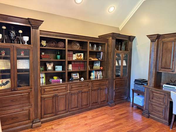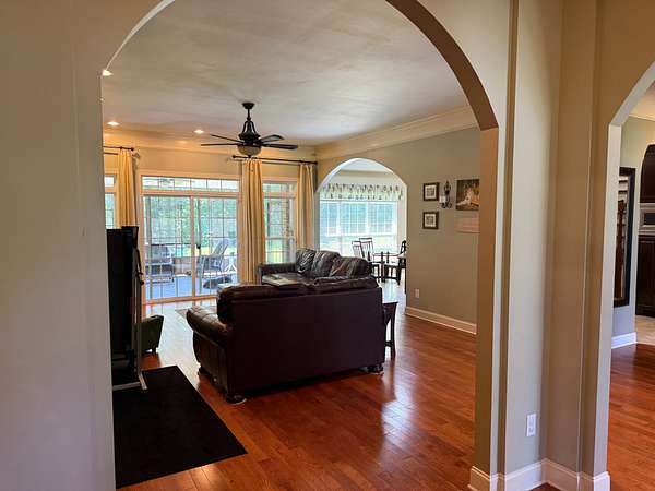 The HomeConstructed in 2007, the 3,600 sq. ft. brick home features 4 bedrooms, 3.5 bathrooms, a dedicated office, a spacious bonus/rec room that could serve as an additional bedroom, stainless steel appliances, hardwood floors, and a cozy wood-burning fireplace. An open living room and kitchen design, along with a dedicated formal dining area, provide excellent space for entertaining friends and family. The main suite features a large private bath with a soaking tub and a walk-in tile shower, as well as an adjacent large walk-in closet. Additional features include a two-car attached garage, a secondary storage garage, a mud and laundry room, a pantry, a screened-in porch, and a large yard with mature oak shade trees, all designed for comfort and functionality.