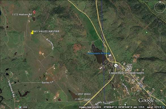 Welcome to Sky Valley Ranch and Airstrip. This unique 160 acre Ranch has a 1920's era natural airstrip. Approximately 2,340' by 35-150 wide, 1,800 feet lighted airstrip with 4 hangars ( 1778, 2,020, 1,920, 1,638 sq.ft.) and multiple tie downs. Also on the property is a quaint two bedroom and two bath Cottage (ADU), where you can stay while you build your dream home on one of the multiple beautiful homesites. Out the front door is a beautiful 2-3 acre year round pond where you can fish, swim off the dock or paddle boat. Two additional seasonal ponds also on property. Ride your horses into the sunset, as there is plenty of space for them to roam and a two stall stable with tack area. So many possible uses for this property, corporate retreat, wedding venue, vineyard, cattle ranch, agriculture, fly in club and more. There is a vast potential for future development and expansion (5 county regional airstrip with additional hangars; tie downs, commercial and industrial businesses, events, and stay overs). Landings, Hangars; Tie Downs - Available by written permission only with insurance additional insured endorsement & fee. Hundreds attended fly-Ins here; seasoned pilots- Vietnam era Blue Angels; Lockheed as well as locals. Use has been minimal the last few years. Come and view this peaceful secluded valley property, 3 minutes off State Highway 4, in the heart of the Motherlode. Seasonal sports & activities including large lakes close by. Only a 5 minute drive to Copper Valley Town Square, with hotel, restaurants, shopping and more. 15 - 40 minute flights to San Francisco, Sacramento, So Lake Tahoe and Yosemite National Park. The ranch has been in and out of the family since 1854. Owner reserves the right to retain/hold 10% of Mineral Rights. Property being sold As is''.