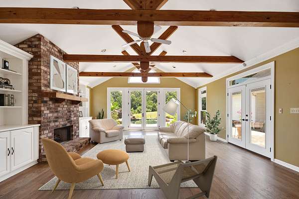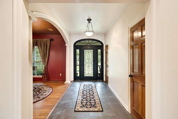 Stunning 6-Acre Estate with Exceptional Features! This beautiful gated home features three spacious bedrooms and 3.5 bathrooms. The inviting sunroom features a gas fireplace, the living room features a wood-burning fireplace. Every window has views of lush pastures, while the gorgeous front porch and low-maintenance perennial gardens add elegance. Equipped with a whole-home generator, the property is fully fenced and cross-fenced, ideal for livestock, with a tranquil pond enhancing the landscape. Outdoor amenities include a beautiful pool with a waterfall, and separate hot tub- perfect for year-round relaxation and entertaining. Barn features hot water and stalls, catering to equestrian needs. Additional highlights include insulated garages and a spacious workshop for hobbies and projects.