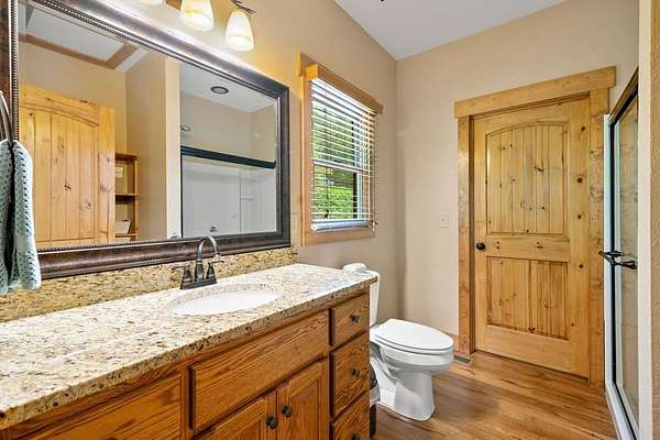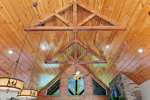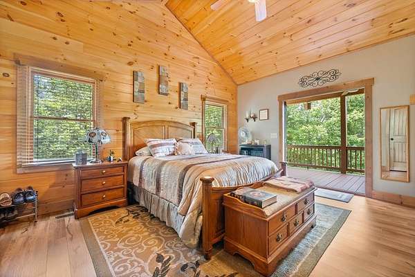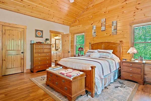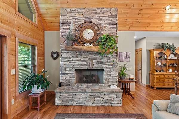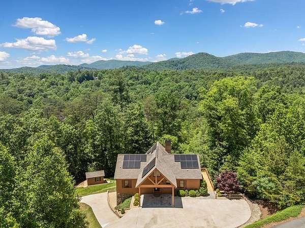 Welcome to 1172 Settlers Ridge - where timeless craftsmanship meets modern sustainability! Nestled in the heart of North Georgia, this stunning 4-bedroom, 3.5-bath log-style retreat offers the perfect blend of rustic charm and cutting-edge efficiency. From the moment you arrive, the oversized timber-frame entry, expansive concrete driveway, and serene wooded backdrop set the tone for something truly special. Step inside to soaring ceilings, a gorgeous floor-to-ceiling stone fireplace, and walls of windows that flood the home with natural light and lush views. The open-concept living space flows effortlessly onto not one, but two full-length covered decks--ideal for relaxing, entertaining, or simply soaking in the peaceful surroundings. Main level offers two master suites for maximum convenience. This home was built to last and made to enjoy, with brand-new railings and a walk up ramp. Freshly painted exterior using Rhino Shield (complete with a transferable warranty). Going green? You'll love the owned solar panels--not leased--keeping utility costs down and eco-conscious living easy. The home also includes a dedicated office space, a workshop, and thoughtful touches throughout--from the cozy wood-burning stove to the upgraded finishes. Whether you're looking for a full-time haven or the ultimate weekend getaway, this property checks every box. This home has been meticulously maintained! Bonus: The private setting, low-maintenance lot, and top-notch condition make this a standout in today's market.