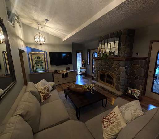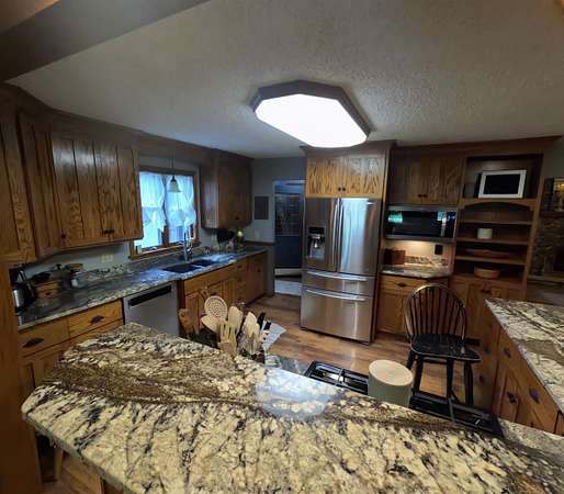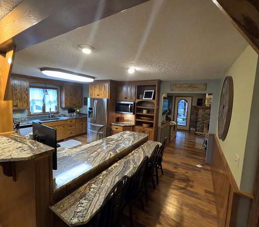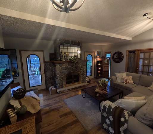Welcome to your dream acreage!! This stunning 2~acre property, ideally situated on a quiet hard~surface road, is an entertainer`s paradise. Picture yourself enjoying warm evenings in the amazing outdoor kitchen and bar area while gathering around the cozy outdoor fire pit. Beyond the incredible outdoor amenities, you`ll find a spacious detached garage for all your toys and climate controlled work space. Plus, this property includes an attached oversized 2~stall garage. Inside, relax in the versatile 4~seasons room or cozy up by the wood~burning fireplace in the main floor living room. The home boasts 4 bedrooms with a jacuzzi jet tub on the main floor, a custom kitchen, and a large dining room perfect for hosting many guests. An extra living room in the basement provides even more space, and the charming front porch invites you to unwind...
