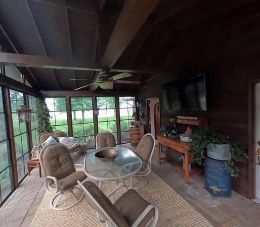 - 3 Season Porch, Acreage, Garage Door Opener, Garden, Landscaping, Lawn Sprinkler System, Trees