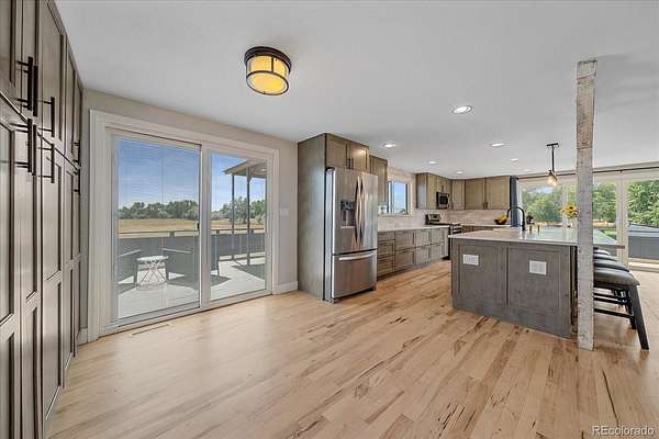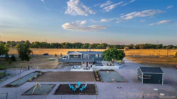 New Price! 10-Acre Mountain View Paradise & Erie Annexation. Discover a rare Colorado gem: 10 acres of privacy surrounded by 1,000 acres of open space, offering mountain views, farm amenities, and unmatched future potential. Agricultural zoning, shared irrigation water rights, city water to the house, and a private well make this property as practical as it is beautiful. A seasonal pond w/ an island and bridge creates the perfect backdrop for entertaining. The ranch style home walk-out basement was completely taken down to the studs in 2020 and rebuilt with comfort and durability in mind. Updates include upgraded insulation, James Hardie cement siding, new roof with gutters, energy-efficient windows, plumbing, electrical, HVAC, and a full interior remodel. Inside you'll find a chef's kitchen with custom cabinetry, a floor-to-ceiling pantry with pull-out drawers, and a 12-foot island designed for gatherings. Fresh living spaces, remodeled bathrooms, a primary suite with en-suite bath, and four additional bedrooms make this home truly move-in ready. Outdoors, the property offers a 10k SF garden with raised beds, melon/pumpkin patches, and orchard. A covered chicken coop with a large run set on a concrete perimeter provides both space and security, while the classic barn features 2 horse stalls and a lean-to area for additional animals or storage. For recreation enjoy a semi wrap-around deck, 4 concrete patios with accent finishes and sit walls, a fire pit, horseshoe, cornhole, and axe-throwing pits, and a bar/shed. Recent annexation into the Town of Erie unlocks extraordinary possibilities. Unlike neighboring Boulder County properties, this parcel allows flexibility to add structures, build an ADU, host farm events, or even scrape/rebuild without size restrictions. Whether you're envisioning a private retreat, hobby farm, or event venue, this property delivers a lifestyle rarely available with such sweeping views and long-term potential.