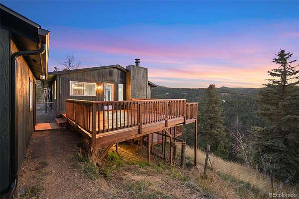 Perched high above it all, this fully remodeled Conifer stunner delivers the kind of mountain lifestyle buyers dream about. Every inch of this home has been thoughtfully updated with a clean, modern vibe that blends seamlessly with its natural surroundings. Step inside to a bright and open ranch floorplan featuring 3 bedrooms and 2.5 bathrooms, including a private primary suite designed for comfort and style. Gorgeous luxury vinyl plank flooring flows throughout the main level, tying together the fresh, contemporary finishes found inside and out. Walls of windows and multiple west-facing decks invite you to soak in jaw-dropping mountain views and unforgettable Colorado sunsets. Whether you are hosting friends or enjoying a quiet evening above the treetops, this home delivers the perfect balance of indoor-outdoor living. Backing to county-owned land, you will love the added privacy and open space that makes this property feel like your own private retreat. Adventure is right outside your door. Hop on your bike and cruise over to James Q Newton Park for miles of scenic hiking and mountain biking trails, or head just down the road to Beaver Ranch, known for its world-class disc golf course and thrilling zip lines. Beautifully situated for those looking for a second home with Short Term Rental revenues projected over $100K. Living in Conifer means embracing the best of Colorado mountain life with easy access to the city when you need it. Nestled in the foothills just southwest of Denver, Conifer offers a laid-back, nature-forward lifestyle with towering pines, abundant wildlife, and a true sense of escape, all while being within a convenient commute to the Denver metro area. This is more than a home, it is a lifestyle.