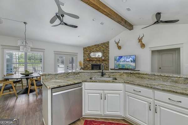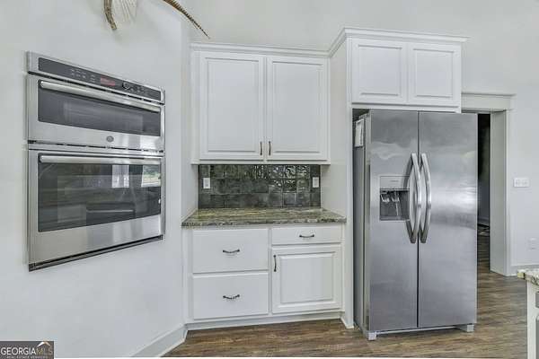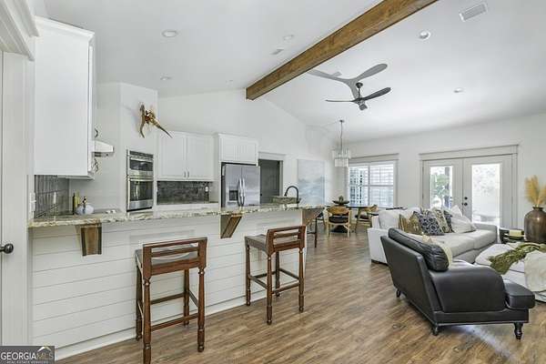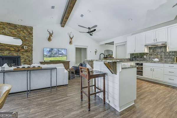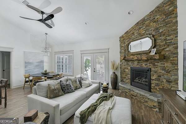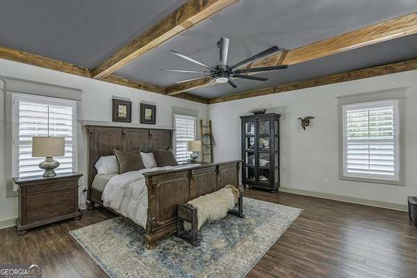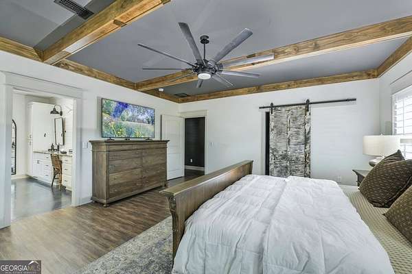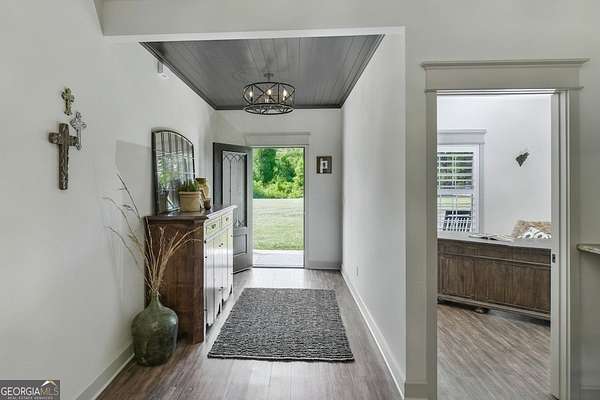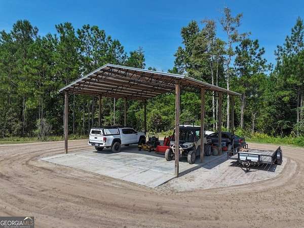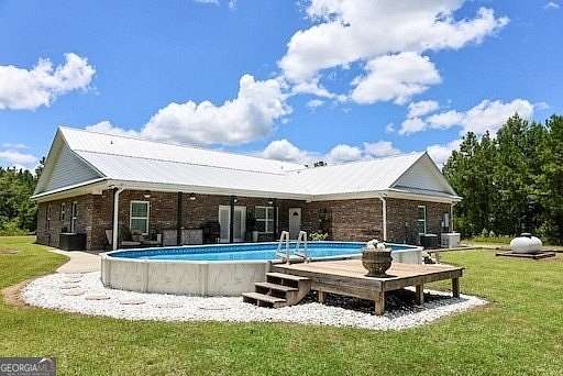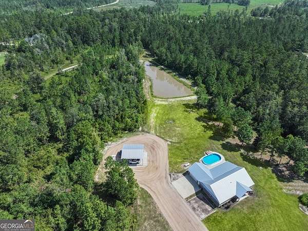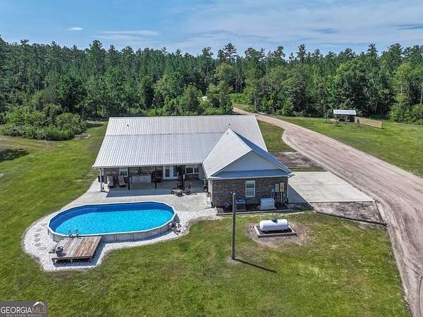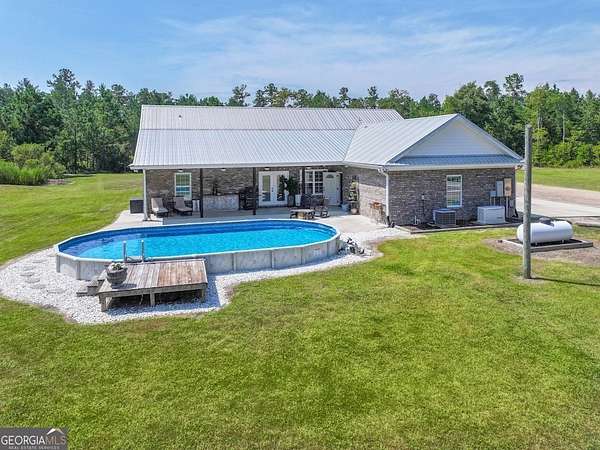 Private paradise is calling you! Located within the gated Timber Rail Plantation community, this property offers all of the bells & whistles on 25 usable acres. Welcoming you with a hitching post entrance, this property boasts an impressive 1.2 acre pond stocked w/ a variety of fish (including bluegill, hybrid bluegill, bass, catfish, & sterile grass carp), an auto feeder, 120V service & a full time aeration system, a 30' x 30' cement slab pole barn, ready to go chicken coop, small orchard w/ guava, apple, plum & kumquat trees, as well as cleared scenic trails & boundary lines (perfect for ATV or horseback riding). Additional features include the easy maintenance brick exterior, all new exterior accent lighting, front & back covered porches, partial in-ground swimming pool w/ lanai & sun deck, private well w/ added water ozone generator, water softener & UV light treatment, & more. Step inside the new front door to a perfect blend of luxury & functionality with 2183 sq ft exquisitely updated w/ new plantation shutters throughout, new interior paint, beautiful new shiplap walls, new solid core wood doors, new craftsman door/window/crown molding accents, new lighting & new upscale granite countertops throughout. The open kitchen, dining, & living area design showcases the high vaulted ceiling w/ new custom wood beams and stacked-stone gas fireplace. The kitchen offers generous prep & serve space, a deluxe stainless steel wide farmhouse sink, breakfast bar w/ new custom wood corbels, stainless steel appliances, & a pantry prepped for your own configuration. The primary retreat makes a lavish statement with its rich color & wood beam ceiling, sizable walk-in closet w/ antique barn door, walk-in tiled shower, & dual vanity w/ ample dressing room & storage. Do not overlook the spacious garage featuring a separate full bath w/ tiled shower & wide stainless sink. Have peace of mind through rough weather knowing there is a Generac automatic whole home 22kw propane generator w/ an above ground tank. Located to the east side of the home, you will also discover an RV hookup & dump, convenient for travelers. Whether you are looking to begin a hobby farm or simply enjoy nature- privacy, luxury, & convenience are all found here. Easy to show or see. Call to schedule your private showing.