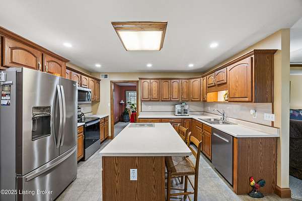 Welcome home to 20 stunning acres of peace and privacy, complete with a pond and breathtaking views. This all-brick beauty offers over 2,200 sq. ft. on the main floor plus a partially finished walk-out basement with a full bathroom, tons of storage, and endless potential for recreation, hobbies, or even additional living space. It has 4 bedrooms, one being a huge primary suite and bathroom featuring both a soaking tub and a step-in shower. The eat-in kitchen has lots of oak cabinets, ample storage, and a large island, plus there's a separate dining room that can double as an office, playroom, or flex space. The inviting living room with a gas fireplace makes it perfect for gathering with family and friends. Step outside to a big front porch and a covered back deck where you can enjoy your morning coffee or unwind at sunset. The property includes a 40x30 metal detached garage and a massive 72x80 barn. Tucked away on a peaceful dead-end street, this property offers the best of both worlds. Serenity and privacy, yet just minutes from the city. Whether you're dreaming of a homestead, a hobby farm, or simply room to roam, this property has it all.