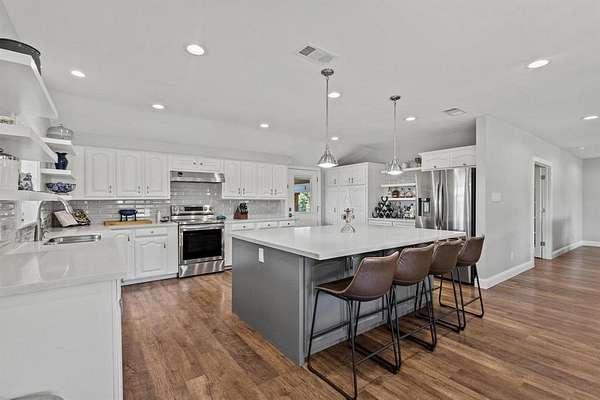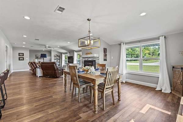 A modern farmhouse with all the fixins...This place has the perfect combination of a beautifully updated home and an ample amount of acreage. It gives a blank canvas for your dreams to become a reality, from a weekend getaway to a permanent homestead. The large kitchen is absolutely stunning so there's no excuses for any bad cooking! Custom cabinetry and stunning features are exquisite. Such easy access to the highways nearby, yet it feels like you are far out in the country. The mature trees are so hard to find these days, and this place has them! The back patio is a true oasis, a place to enjoy a cold drink on a hot summer day...use the outdoor kitchen to grill out...or build a firepit under the millions of stars and listen to the crickets sing. Two fenced pastures, ponds, two creeks, a loafing shed, what else do you need?! Bring your livestock. There's a well for the outside water spickets too. Grow your own food in the garden, light a fire in the wood burning stove, and THRIVE here on your own land! Hunt on your own land, see pics. Roof, gutters, and septic system all replaced in 2023. Windows are newer, all inside has been updated! Completely move in ready. Leveled in 2025 also. Schedule your private showing today.