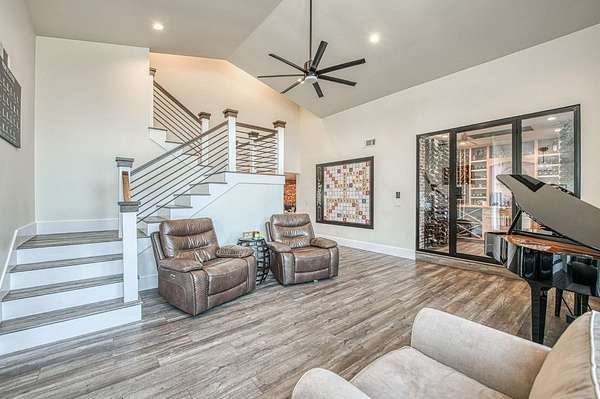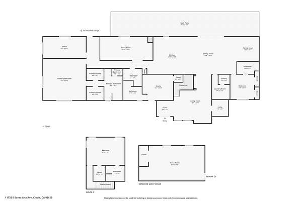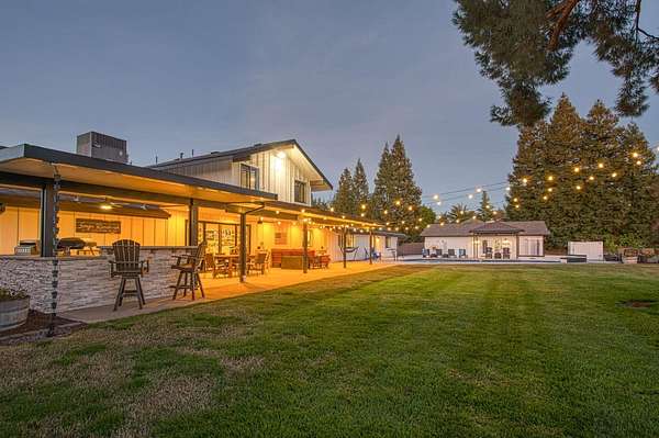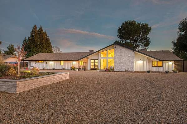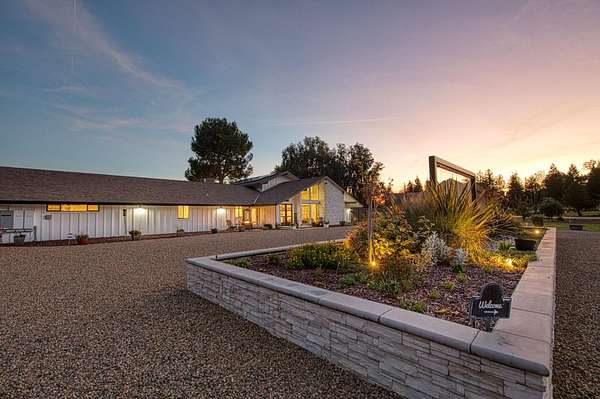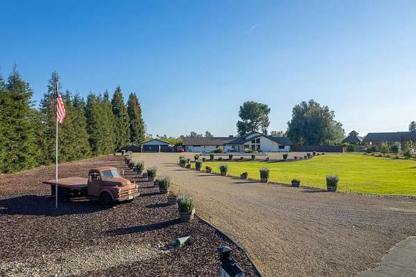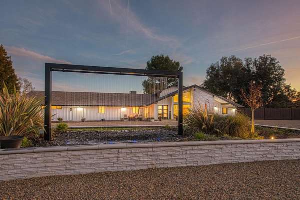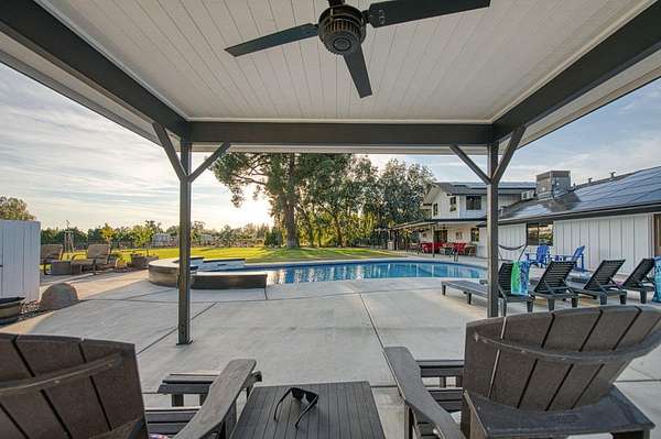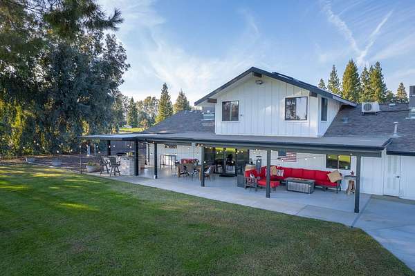 Luxury living in this Clovis Countryside, Sonoma inspired Ranch House. Nestled in a secluded cul-de-sac of custom homes on 2 acre lots. Boasting 5 Bedrooms, 5 Bathrooms, and approximately 4,902sqft of Living Space. There is plenty of room for growing families and Next Gen Living including a Game Room, Family Theater Room, Living Room, Home Office plus an isolated Bungalow and Guest Studio. Plenty of parking on the 23,000sqft driveway with a luxury water feature that sparks imagination with elegance and sophistication. Entering the front door, you're welcomed with floor to ceiling windows with expansive views and a custom 500 bottle Wine Cellar with its own Whipserkool AC system. Wander into the well-designed open floor plan kitchen and dining space with a chef's full slab quartz countertop island, a 36'' Professional Bosch gas stove and oven, additional GE Profile convection microwave and electric oven plus a large dining space adjacent to double sliding glass doors looking to a beautiful sprawling manicured yard. This estate is waiting for you to host your next family gathering. In the backyard, relax on the 60-foot covered patio with scenery of green lawn, sparkling pool with waterfall features, LED lightning, and a large Sun Shelf for lounging in the water. The RV Parking area has full hookups with dedicated Electrical Pedestal, water and septic connections. Enjoy the built-in BBQ island and pizza oven while gazing upon miles of open spaces beyond your backyard. This home has man-made private lake views and NO HOA. This custom home was extensively remodeled from 2021 to 2024 (plans/permits available) with over $900,000 in upgrades including many Smart Home Wi-Fi features all controlled by an included iPhone remote. There is 400amp PGE service plus 4 Tesla Powerwall's, 2 Tesla EV Chargers, and 43 Solar Panels = 17.2 kWh Paid for Owned Solar System. Energy efficiency with Anlin Windows, 2 Tankless Water heaters, Luxury vinyl planking throughout, and it's wrapped with fire-resistant fiber cement siding. Ask your realtor for Solar System information, complete List of Upgrades, List of Property Features, and Reports and inspections completed on well, septic, pest clearance, HVAC and Roof certification. The location is positively ideal. Enjoy the tranquility of rural living just 10 minutes from urban amenities and quick freeway access to anywhere you want to go. Discover your perfect, prestigious countryside retreat and make your appointment today!