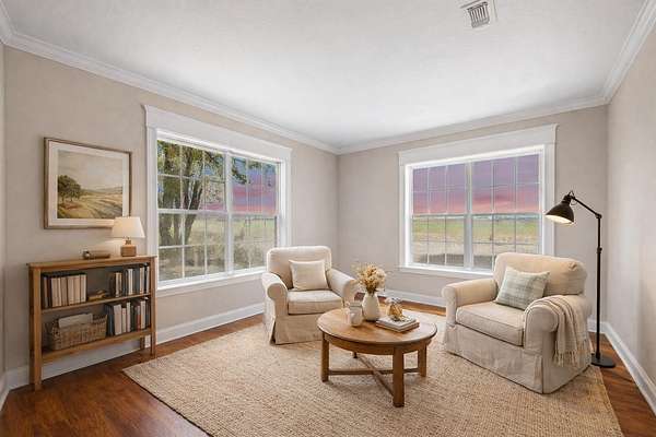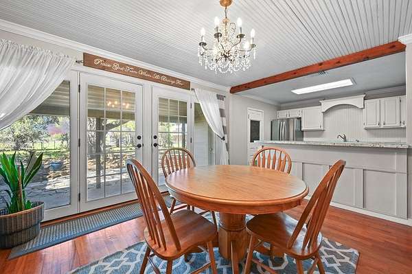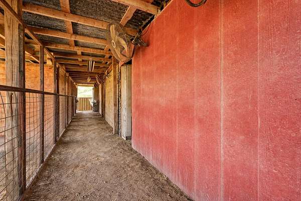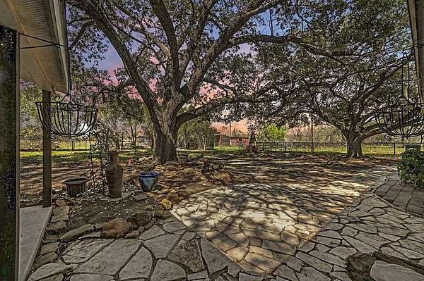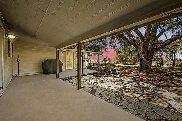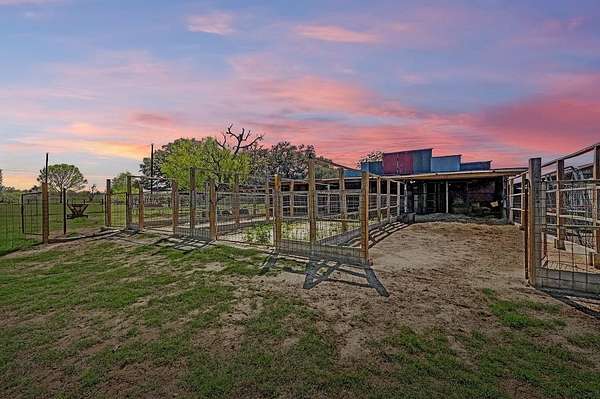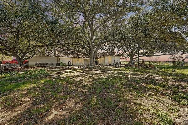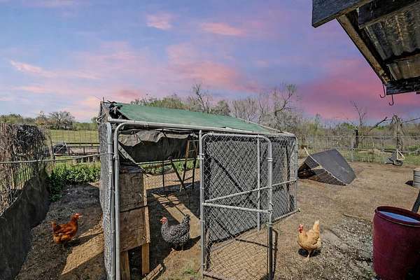 24+ usable acres just outside Stockdale w/ full perimeter fencing + Ag exemption in place w/ very low taxes! Underneath the shade of a cluster of mature oaks, you'll find a single story 3 bed, 2 bath farmhouse with a dedicated office on city water+electric. The house opens into a living area with a historic Texan fireplace, hardwood floors, and updates throughout. The primary bedroom is tucked away from the rest with tall windows. Fully updated master bathroom w/ garden tub plus newer shower. Primary bedroom also has direct patio access through french doors. Head outside to find a shaded patio & backyard with a firepit area, plus a fenced garden with water spigot. The main house also features a huge interior dry storage room & a covered carport w/ a large exterior storage area. Behind the fenced backyard, you'll greet your animals at a well-equipped livestock area featuring a western-style horse barn. The barn offers a storage room, 3 oversized animal stalls, plus a fully set-up chicken run & coop. Inside the barn you'll find overhead lights, metal fans, & water hookup. Multiple outbuildings are adjacent to the barn, including an air-conditioned reloading shed with electric, & additional shed with electric hookup. Open up the stalls to a fenced space w/ goat mesh as well as water-connected troughs, ideal for horses, poultry, & small-scale ranching. Just behind the barn, you'll find a seasonal creek following a shaded treeline. Head across the creek for additional acreage and to access the best-looking part of the land, wooded with lush green grass and referred to by the sellers as "the park". The largest section of the land, the massive pasture, is fully cleared for cattle, horseback riding, or growing hay/crops. Sellers were told mineral rights convey with the property, buyer to verify with the title company. The main house HVAC system is ~8 years old. The pasture features an ever-so-slight hump in the center that naturally adds privacy from views of others land.