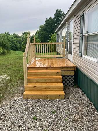 Remodeled mobile home on great 17.99 acres in western Anderson county backing to 1600 feet of Beaver Creek. Ready to move right in and has had several updates including new HP system, hot water heater, electric service. and all new front and rear porches. Most all of the property is wooded and has a small creek bottom. Welcome VA and FHA buyers. Located appx. 1 mile off the BGP at exit 48.