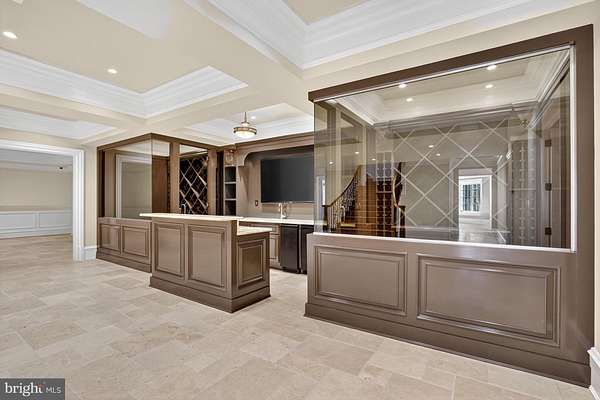 - Attic, Bar, Breakfast Area, Built-Ins, Butlers Pantry, Carpet, Chair Railings, Crown Moldings, Double/Dual Staircase, Elevator, Entry Level Bedroom, Family Room Off Kitchen, Formal/Separate Dining Room, Gourmet Kitchen, Island Kitchen, Pantry, Primary Bath(s), Recessed Lighting, Soaking Tub Bathroom, Wainscotting, Walk-In Closet(s), Walk-In Shower Bathroom, Wet/Dry Bar, Whirl Pool/Hot Tub, Window Treatments, Wine Storage, Wood Floors